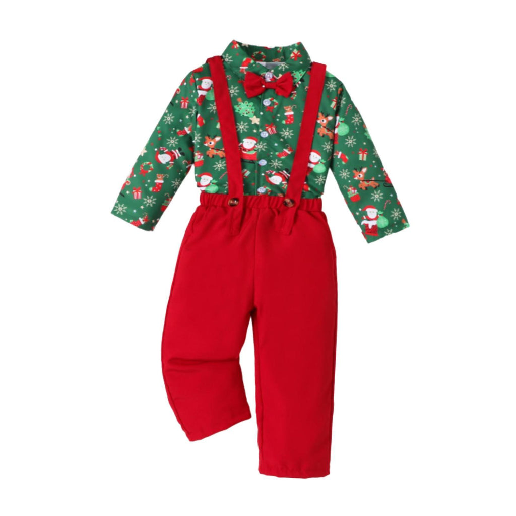 【Christmas Gentleman Outfit】: This festive ensemble is great for your little gentleman to celebrate the holiday season in stylish. It includes a shirt, pants, bow tie