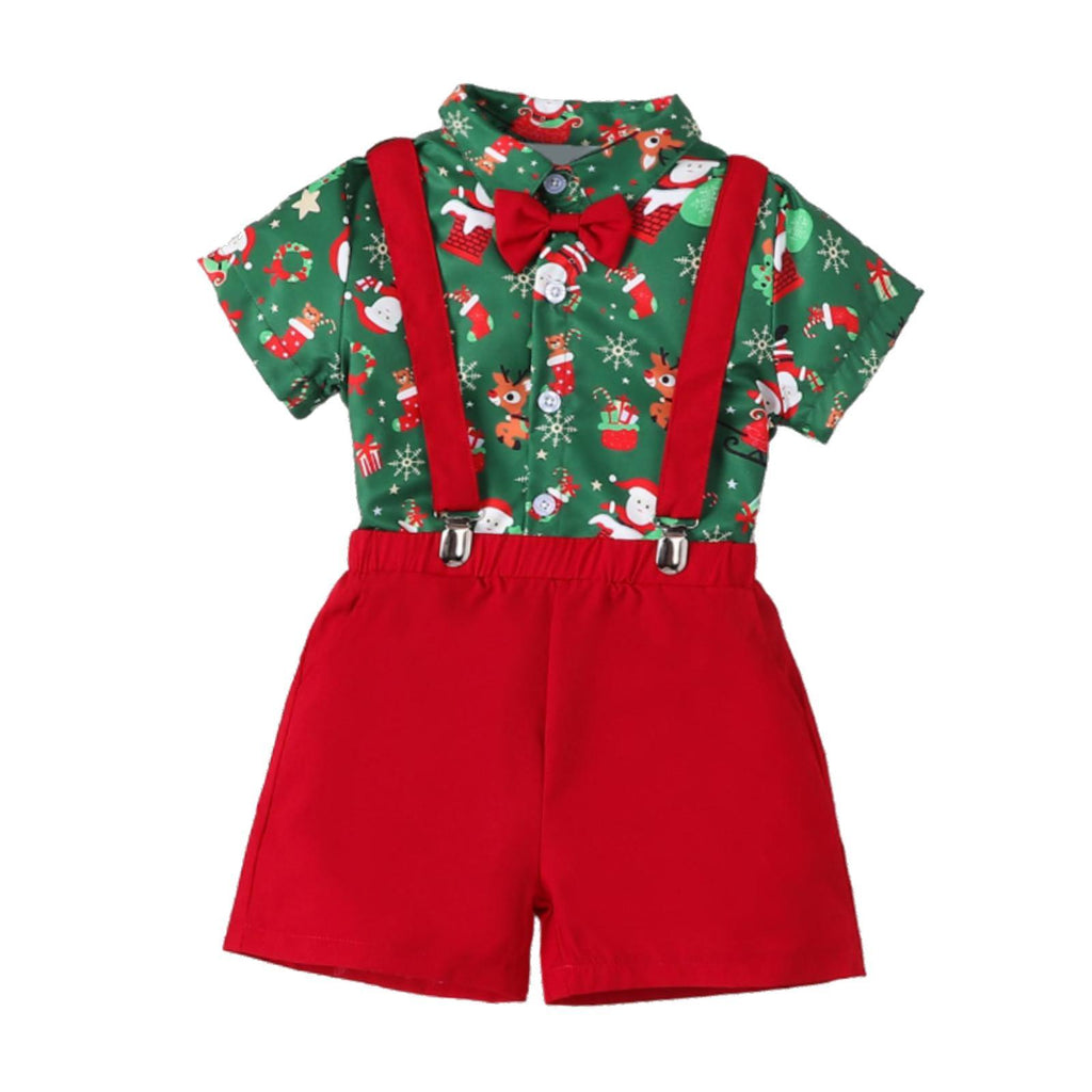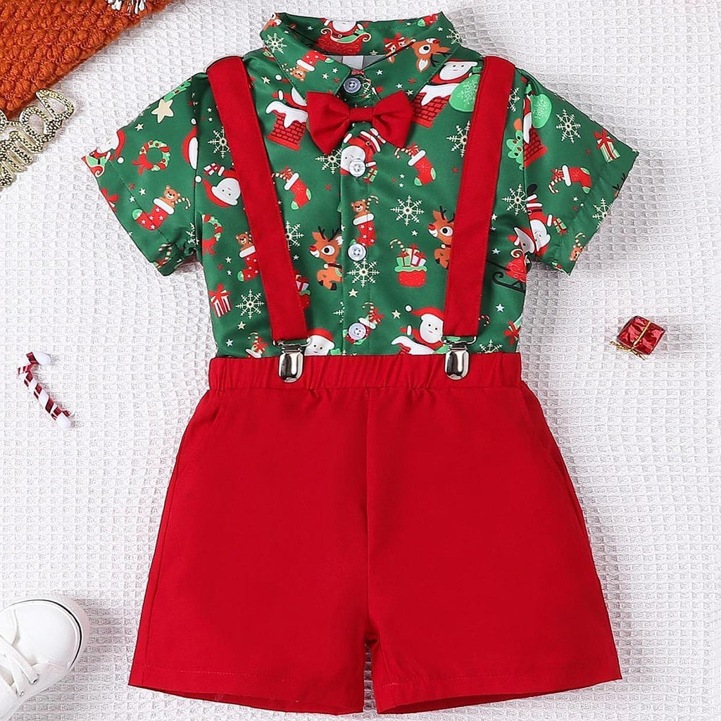 Maxbell Gentleman Outfits with Bow Tie Christmas Outfits for Kids Children Festivals Short Sleeve Clip