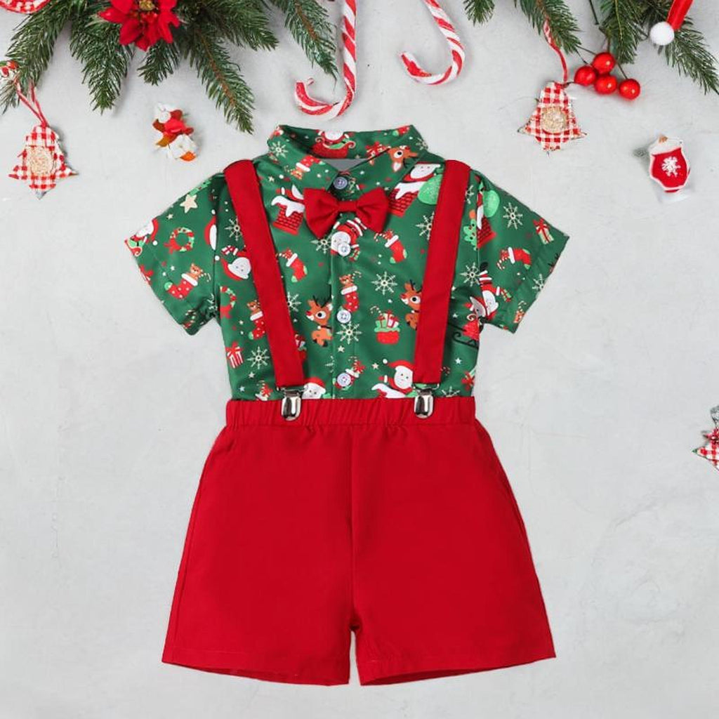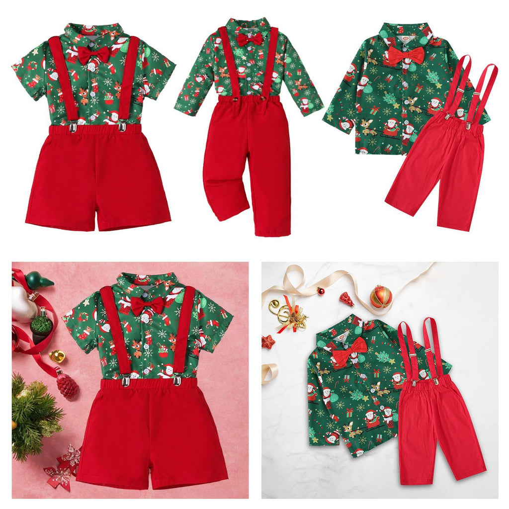 【Christmas Gentleman Outfit】: This festive ensemble is great for your little gentleman to celebrate the holiday season in stylish. It includes a shirt, pants, bow tie