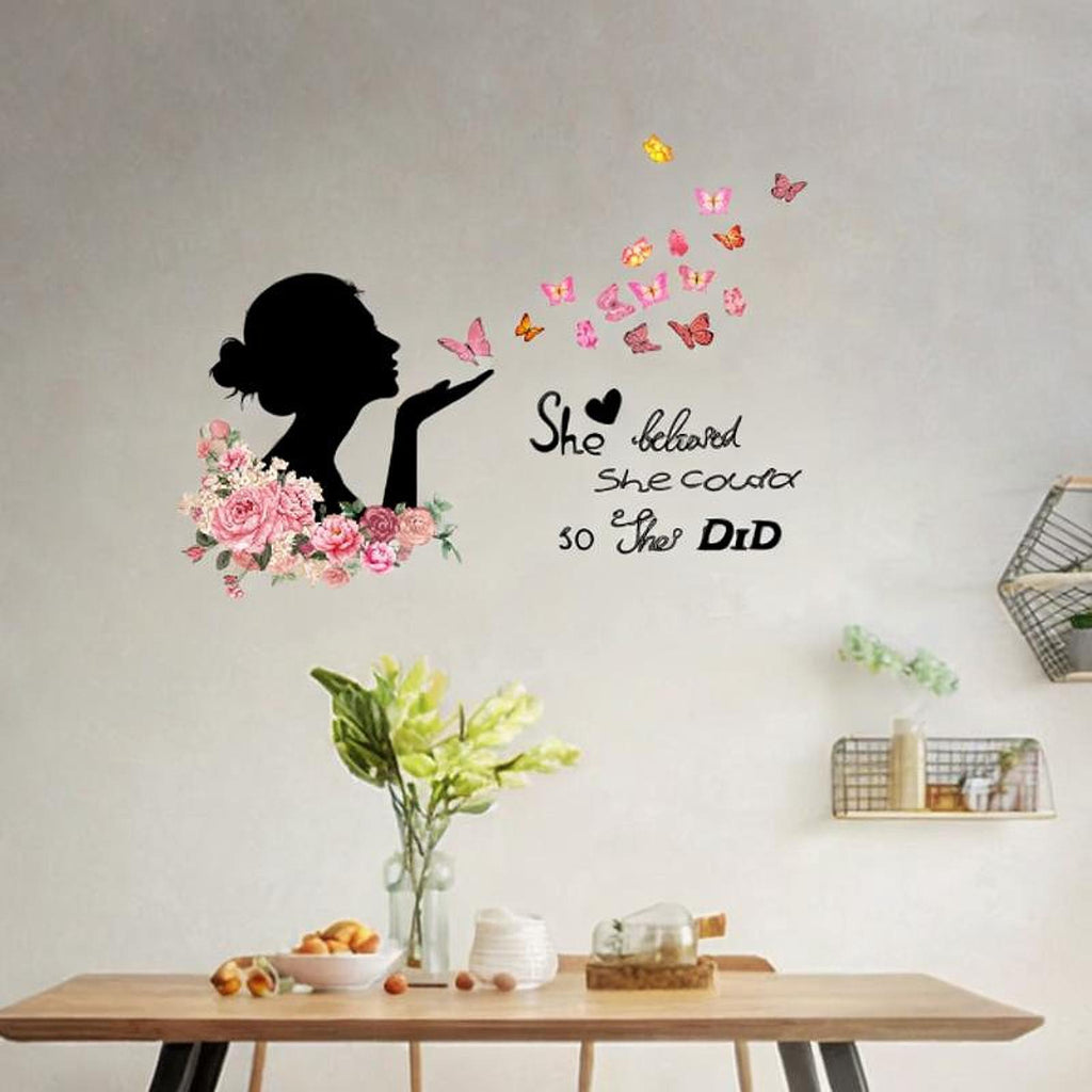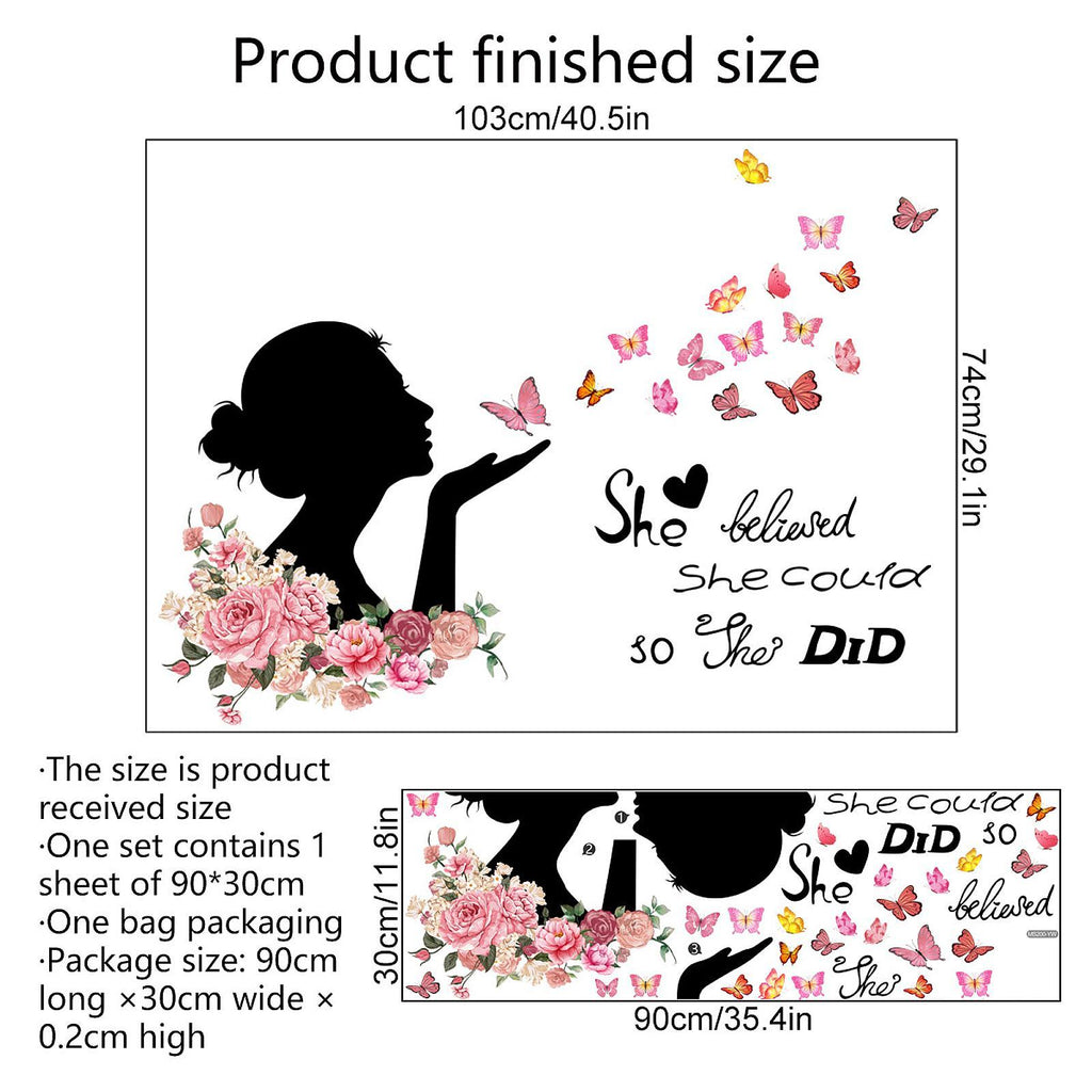 【Inspirational Design】: Featuring a charming girl with butterflies and motivational phrases, this wall sticker brings positivity and creativity to your room decor