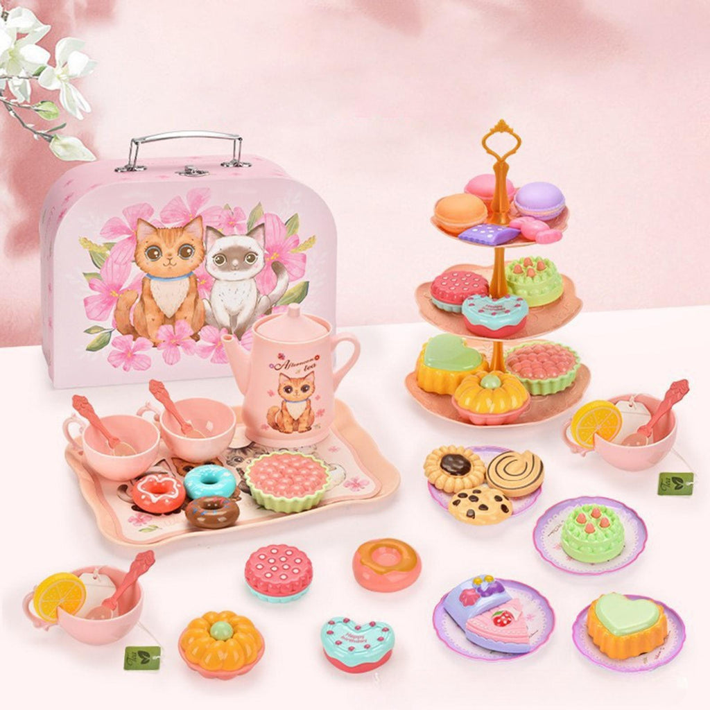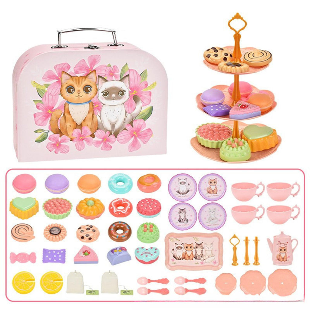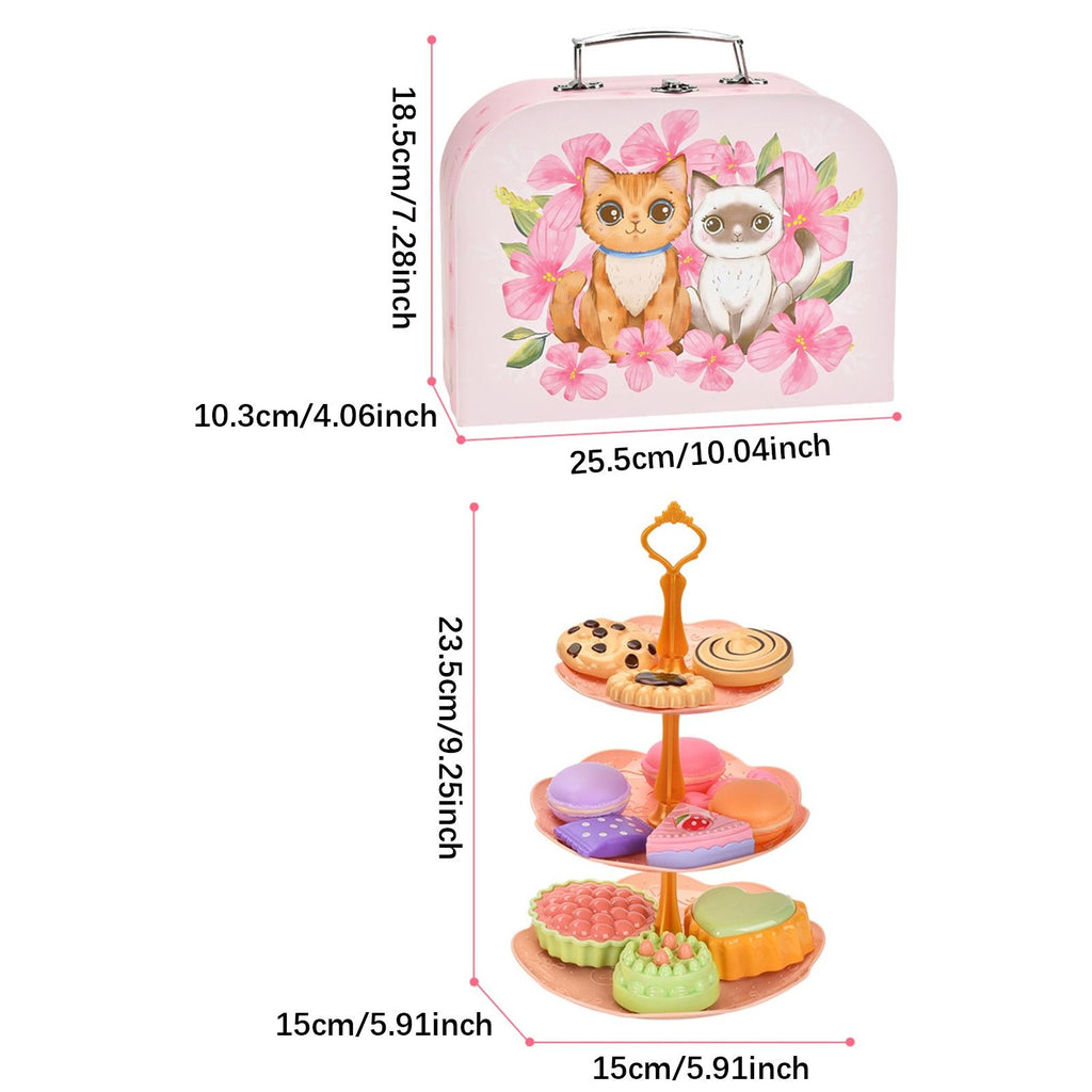 【Comprehensive 46 piece set】: This tea party set includes everything needed for a delightful pretend play experience, featuring a teapot, cups, plates, bowls, desserts, and a cake stand to enhance children's imaginative games