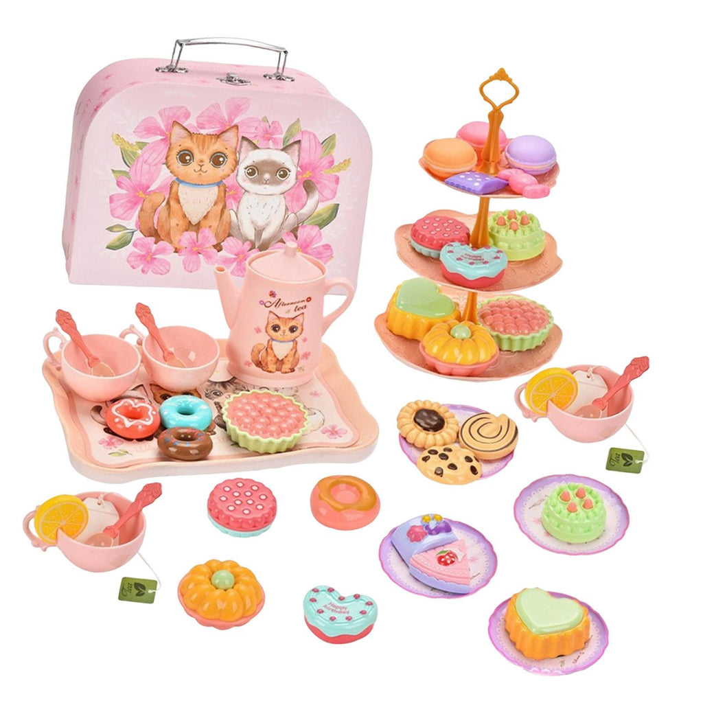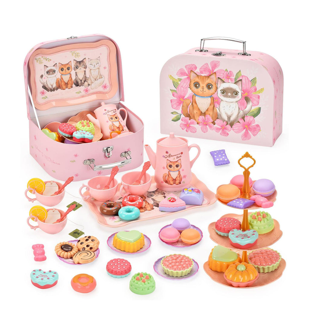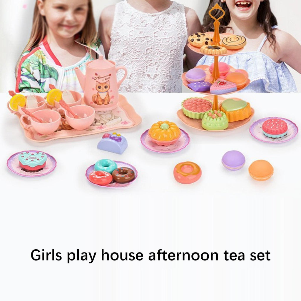 【Comprehensive 46 piece set】: This tea party set includes everything needed for a delightful pretend play experience, featuring a teapot, cups, plates, bowls, desserts, and a cake stand to enhance children's imaginative games