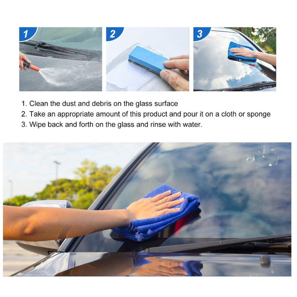 【Safe Cleaning】: Mild formula, does not hurt glass, super active particle formula can safely loosen sticky pollutants and easy to wipe, solve the problem of abnormal wiper noise and fuzzy. Make travel more comfortable, clear and safe.