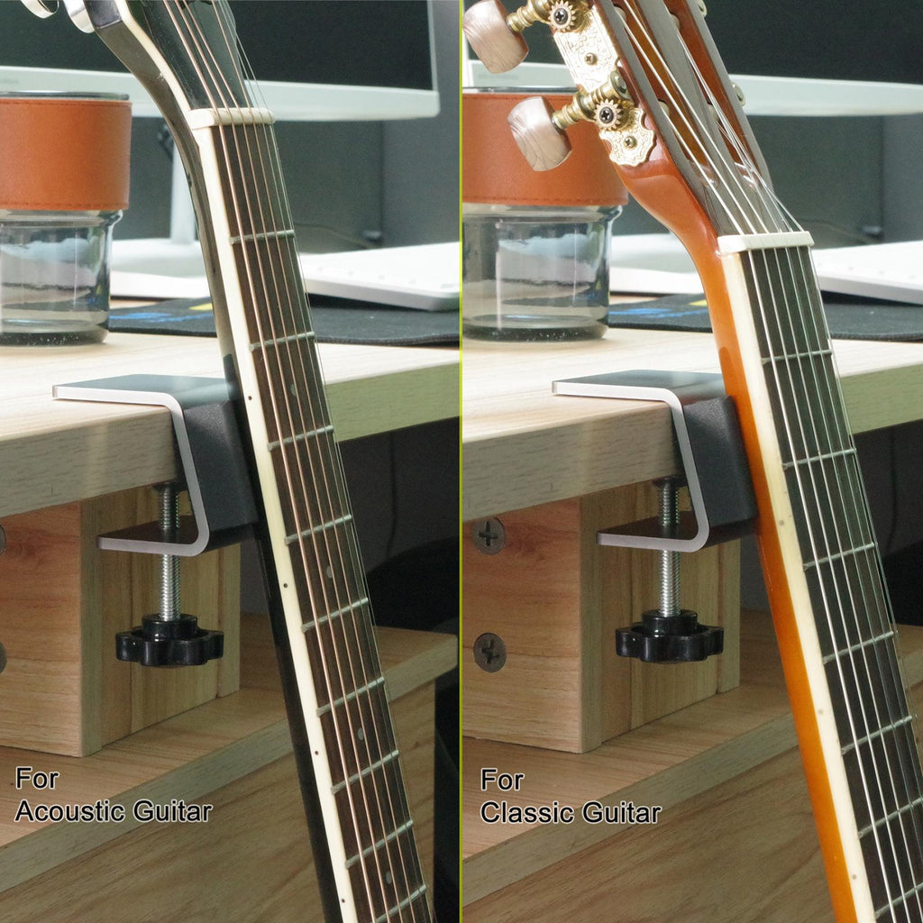 【Function】:The adjustable guitar holder hanger can clip on the desk that ensures your guitar stays securely in place.