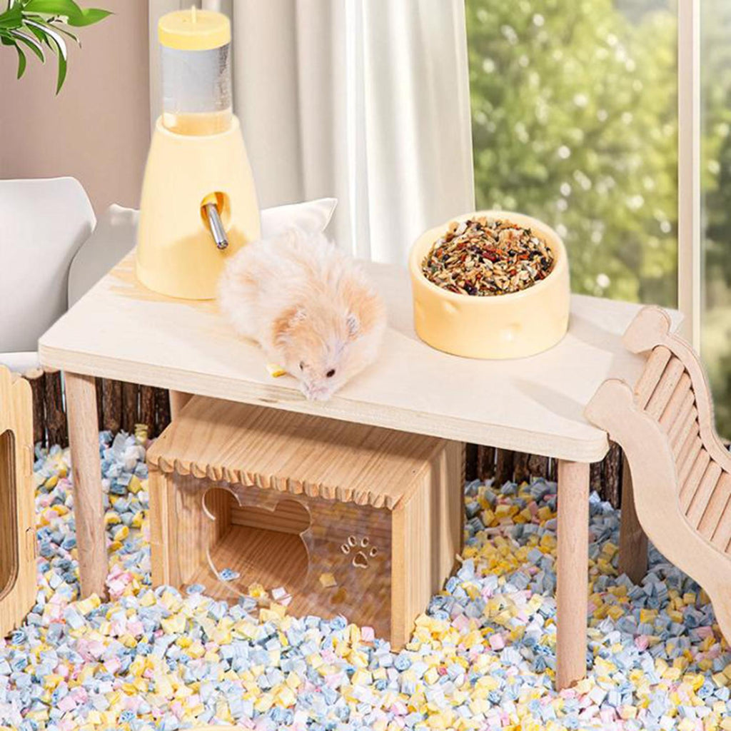 - 【Design】: The Wooden Hamster Play Platform is functional and aesthetic design adds convenience to pet's habitat