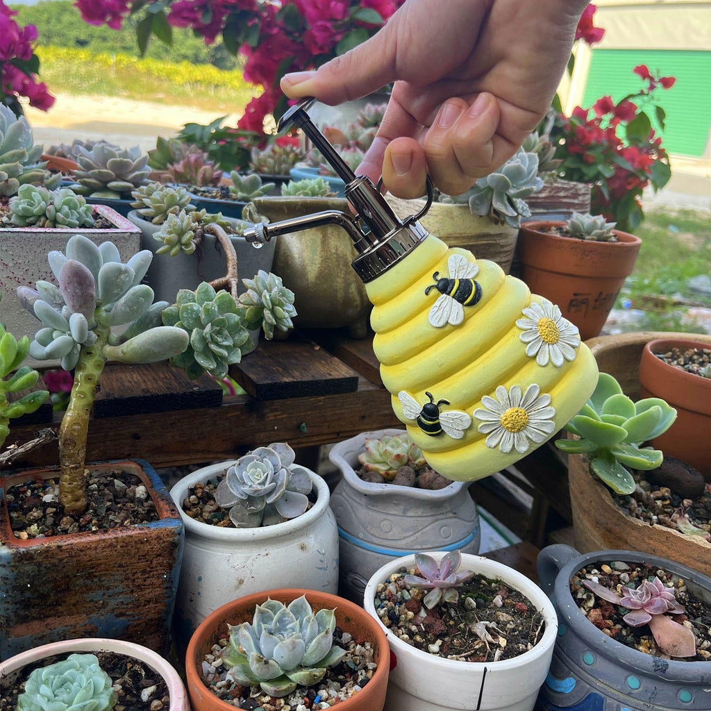 【Cute Shape】: This interesting and creative handheld pressure sprayer, has a unique yellow hive shape, decorated with bee and flower patterns. The lovely style is perfect for decorating your home and garden.