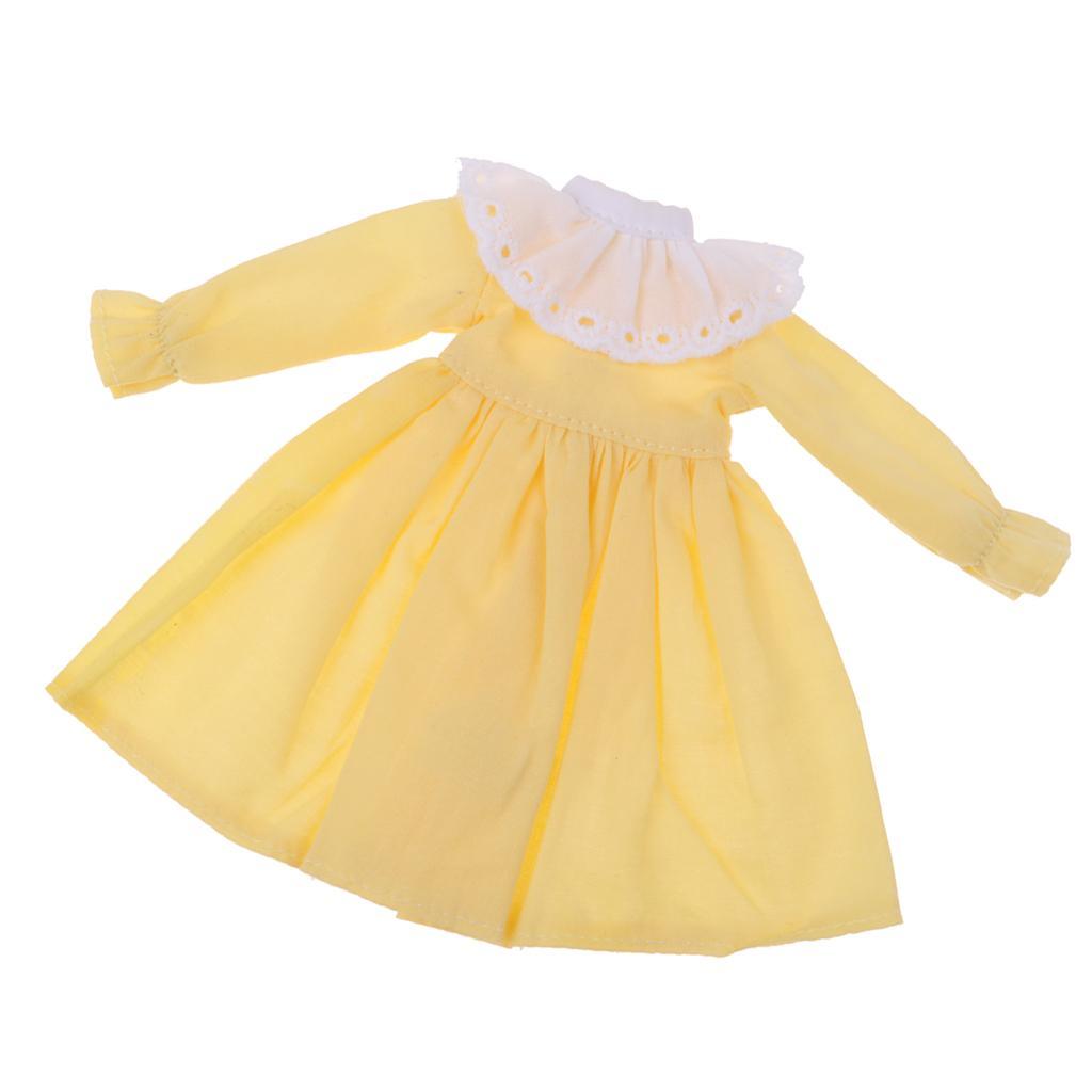Maxbell Maxbell Handmade Cute Doll Costume Long Sleeve Dress for 1/6 BJD Blythe Dolls Yellow