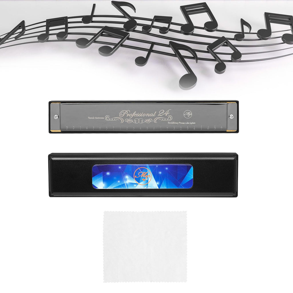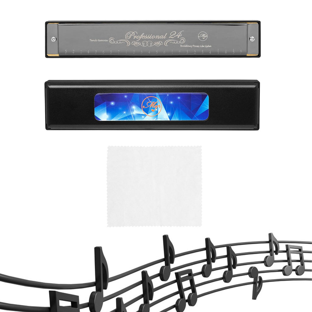 Maxbell Harmonica Toy 24 Hole Diatonic Harmonica for Students Beginners Professional Black