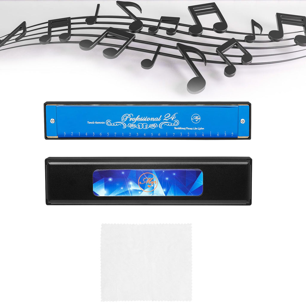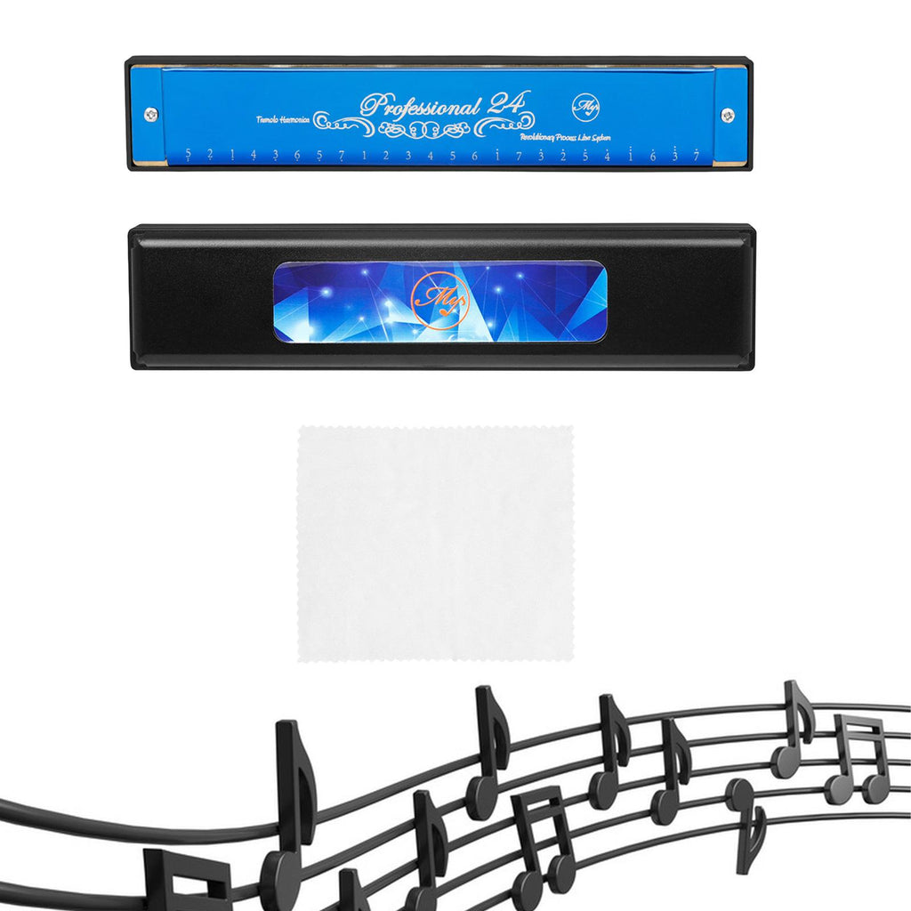 Maxbell Harmonica Toy 24 Hole Diatonic Harmonica for Students Beginners Professional Blue