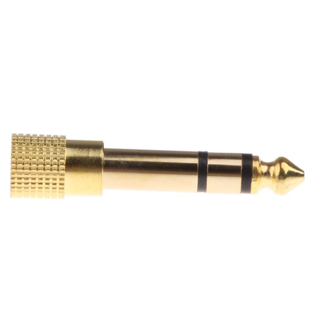 6.35mm male to 3.5mm female stereo adapters allow a 6.35mm (1/4 inch) stereo port to accept a stereo cable with a standard 3.5mm (1/8 inch) plug