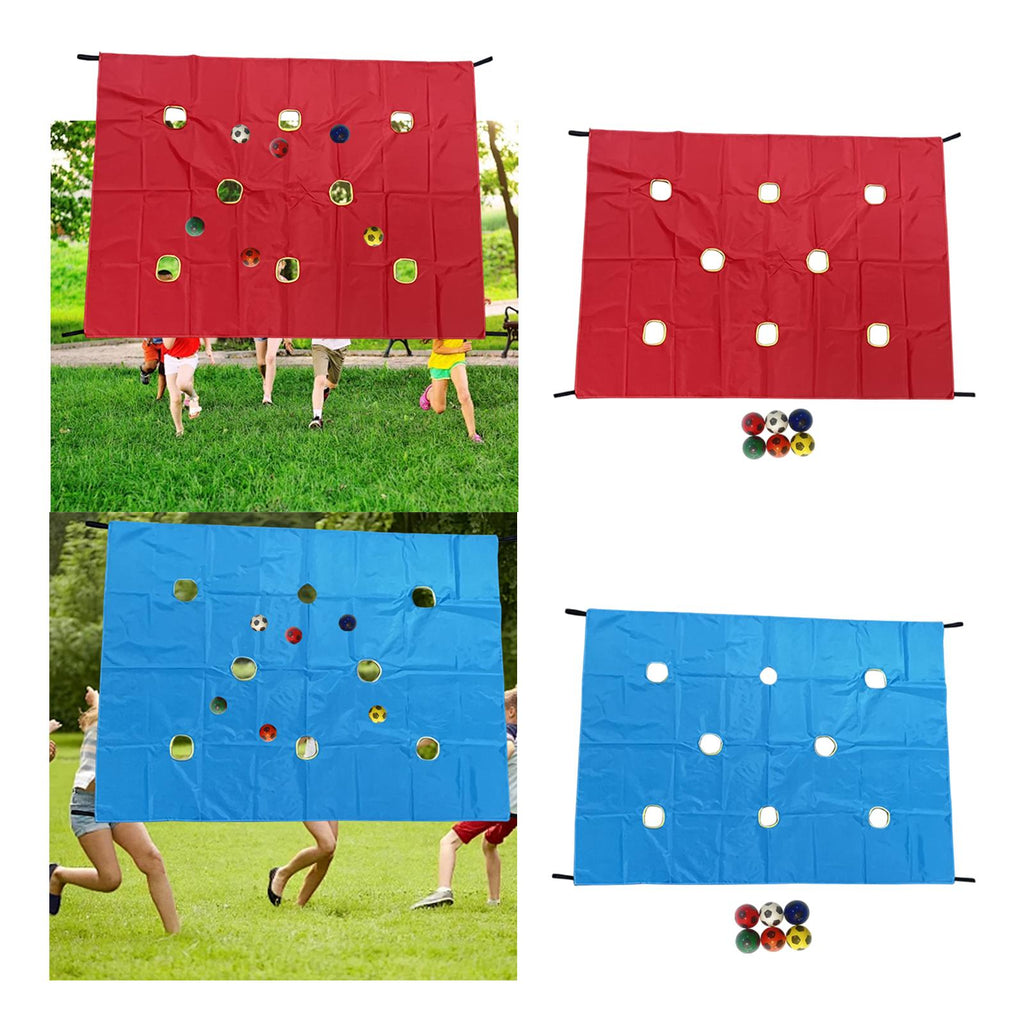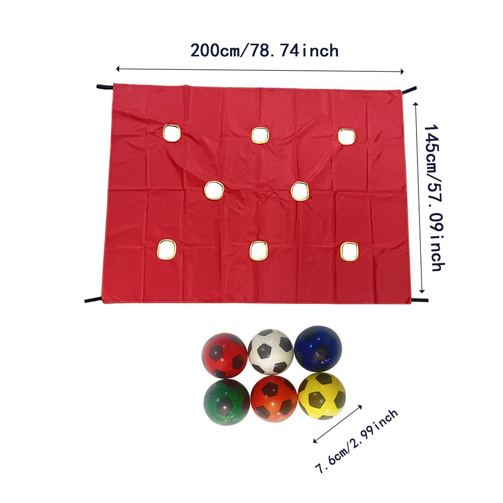 【Versatile Activity Set】: Interactive Plaything Educational Game suitable for all age groups, this set includes 1 perforated cloth (measuring 200cmx145cm/78.74inchx57.09inch) and 6 PU balls (each 7.6cm/2.99inch in diameter), it offers diverse gameplay options for various events or casual play