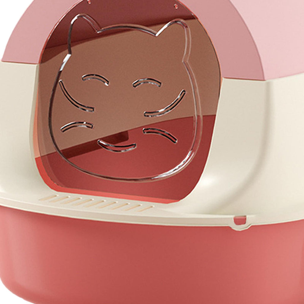Maxbell Hooded Cat Litter Box with Lid Sandbox Fully Enclosed Cat Toilet Extra Large pink