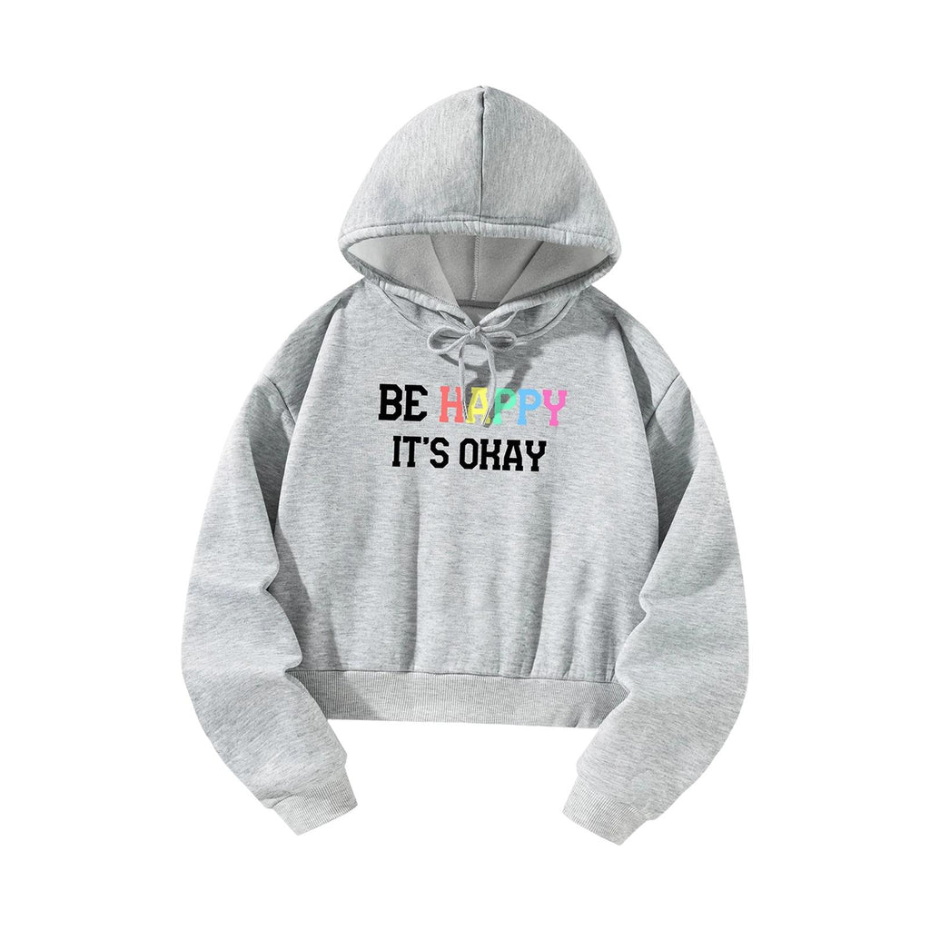 【Hooded Sweatshirt】Women Letter Printed Drawstring Sweatshirt is hooded, with cinched cuffs and hem, stylish and casual.