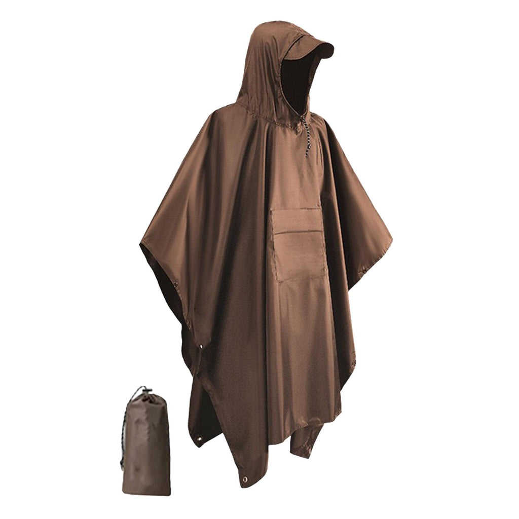 Maxbell Hooded Rain Poncho Portable Rainwear Jacket for Backpacking Brown