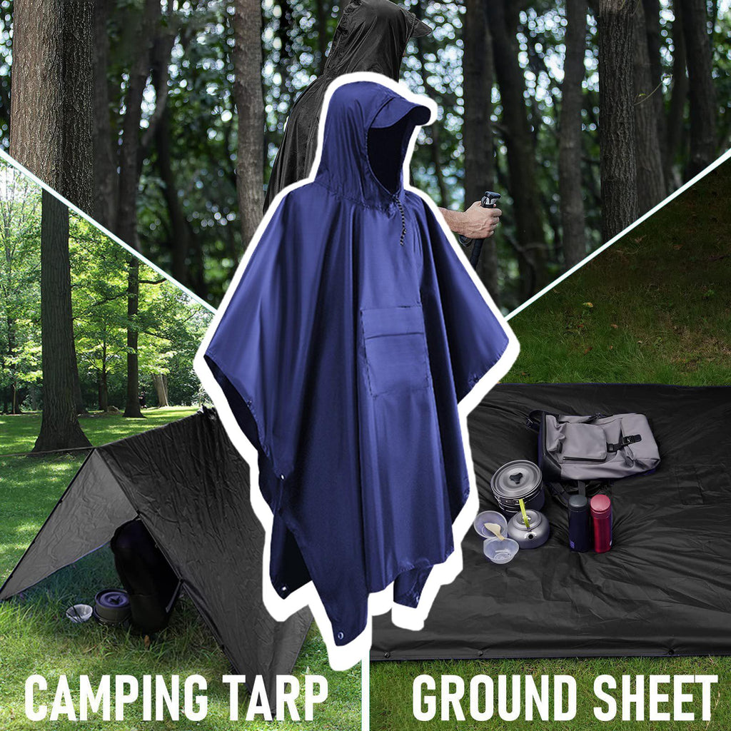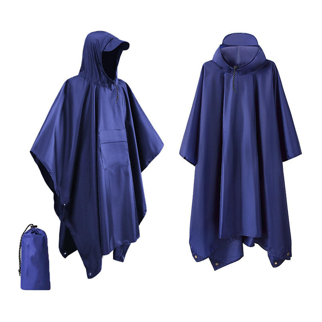 Maxbell Hooded Rain Poncho Portable Rainwear Jacket for Backpacking Navy Blue