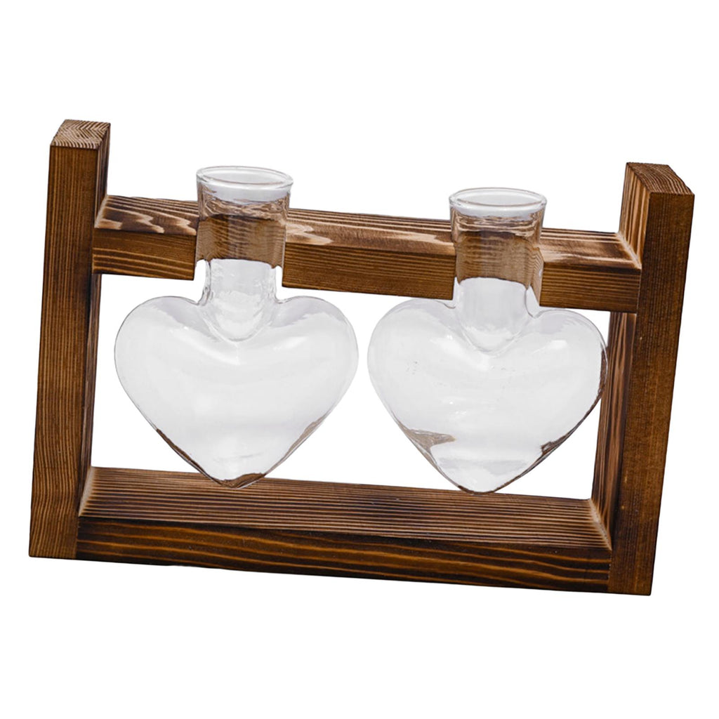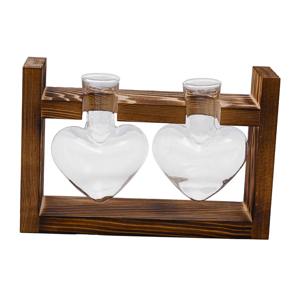 1 Wooden Stand, 2 Heart Shaped Glass VaseNote: