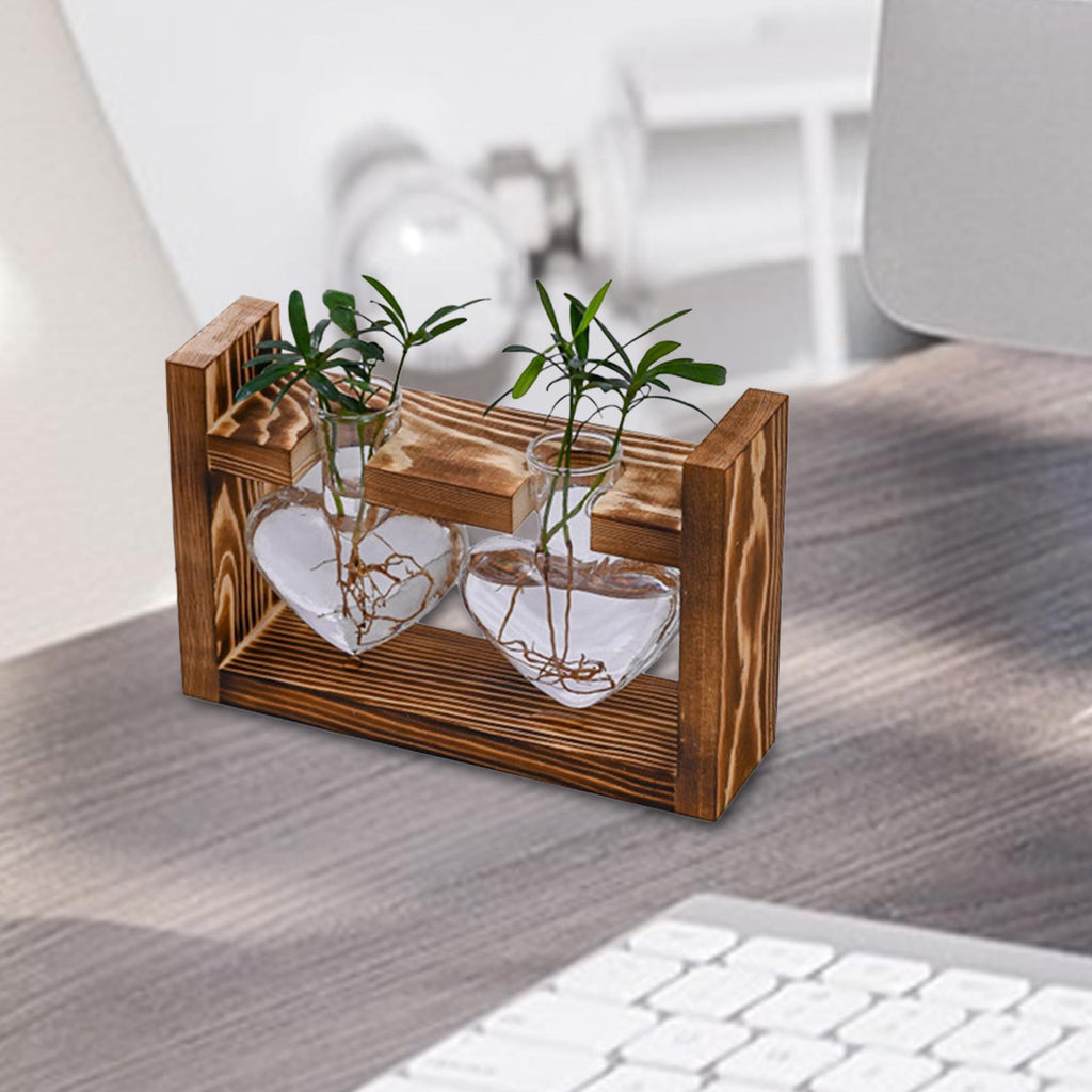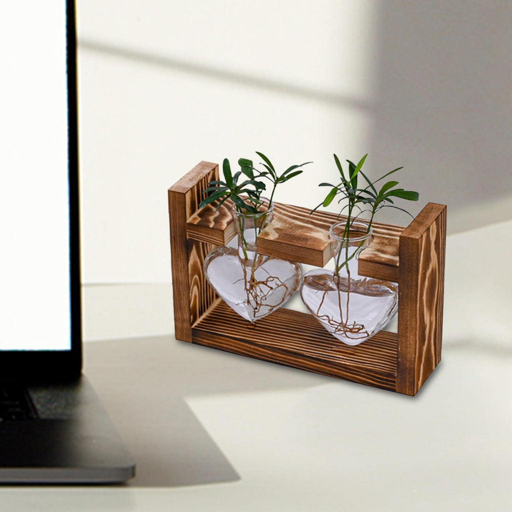 【Unique Design】: This unique and creative flower vase features a retro designed flower pot, equipped with heart shaped vase and wooden stand, offering an elegant and attractive appearance.