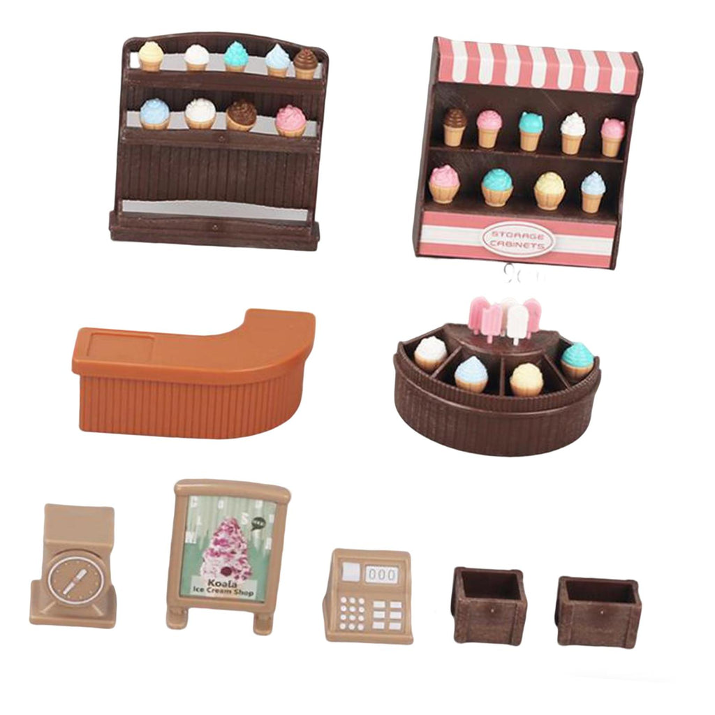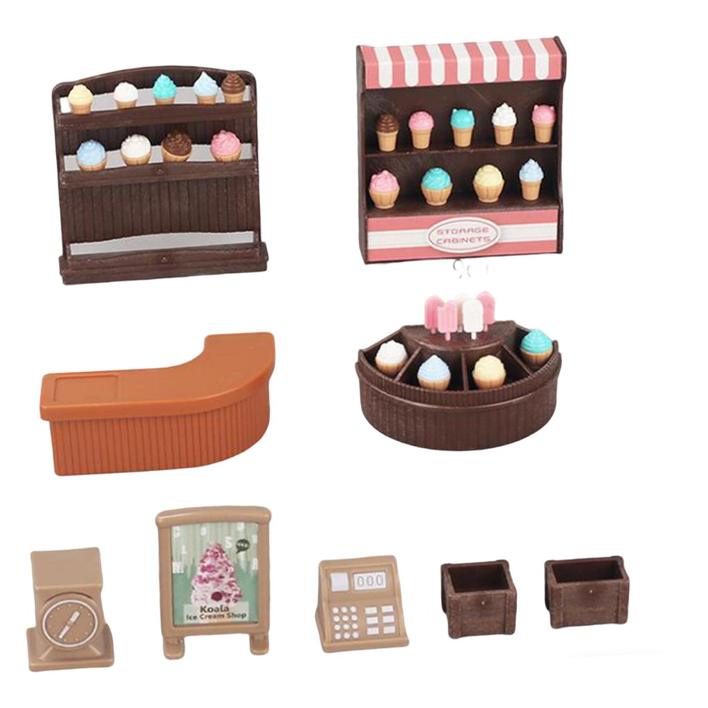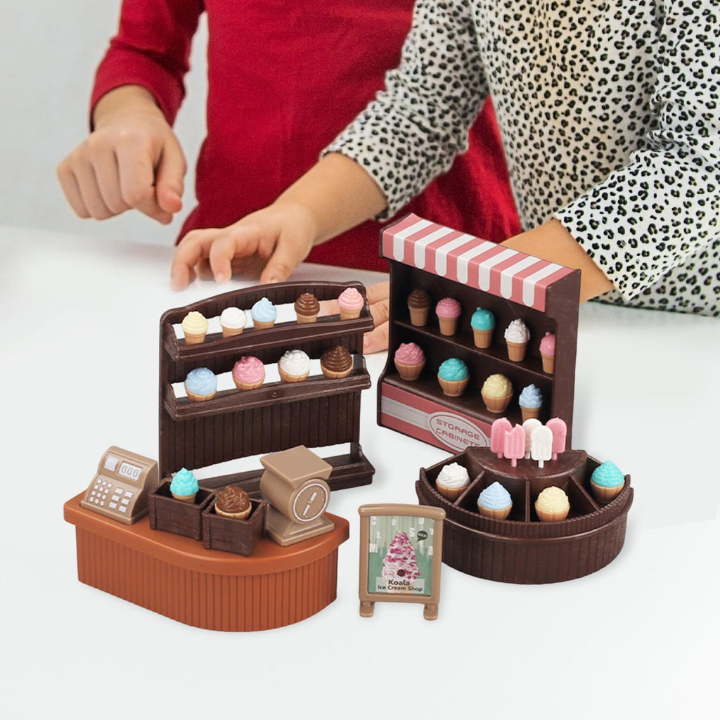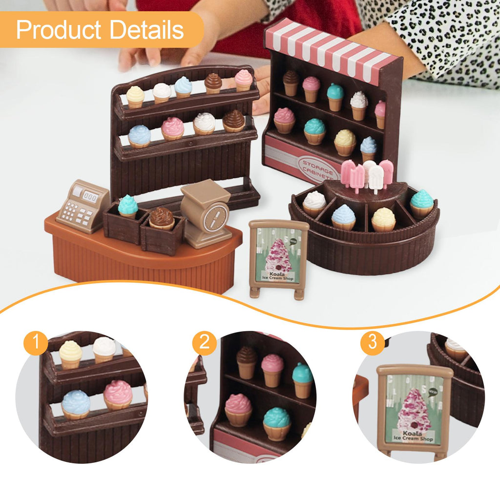 - 【Material】: Ice Cream Counter Playset is made from ABS for safe use and long term durability; includes 1 complete set of the mini ice cream shop for endless pretend play adventures