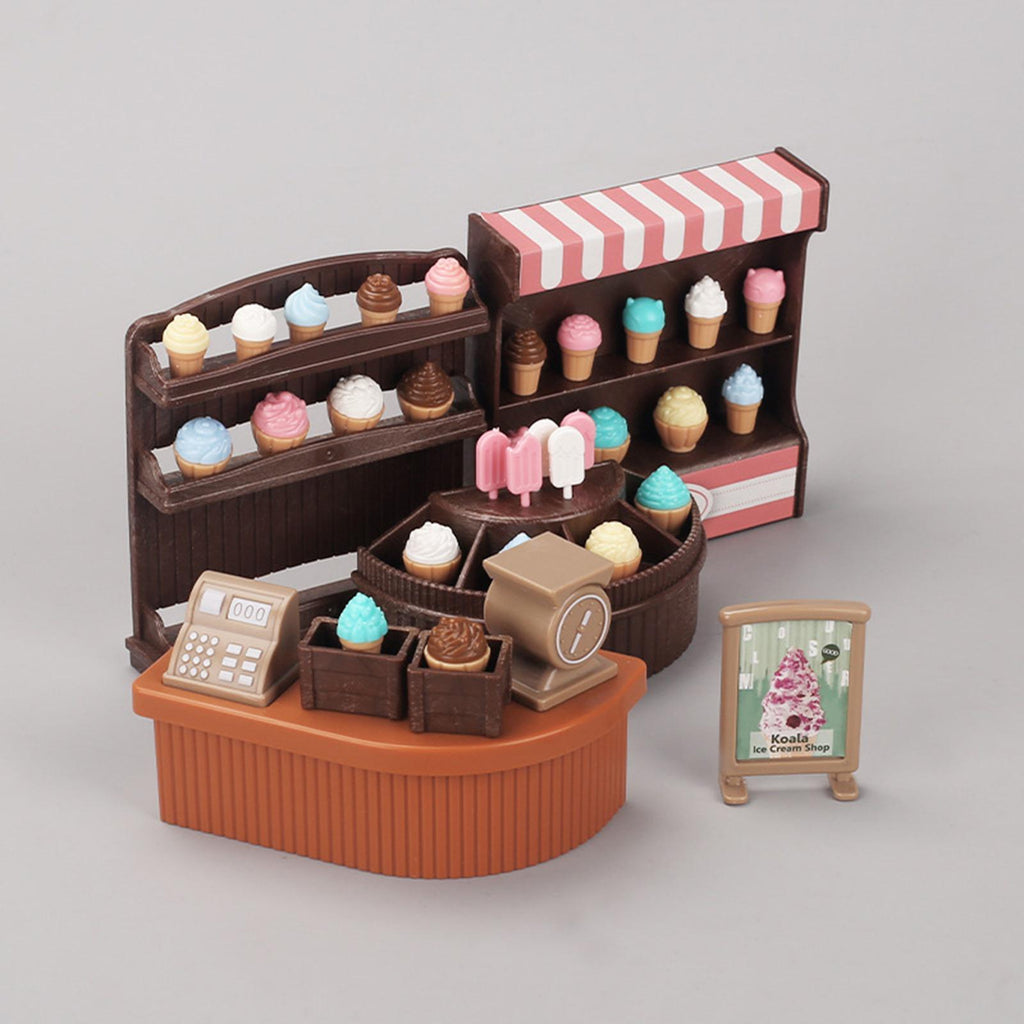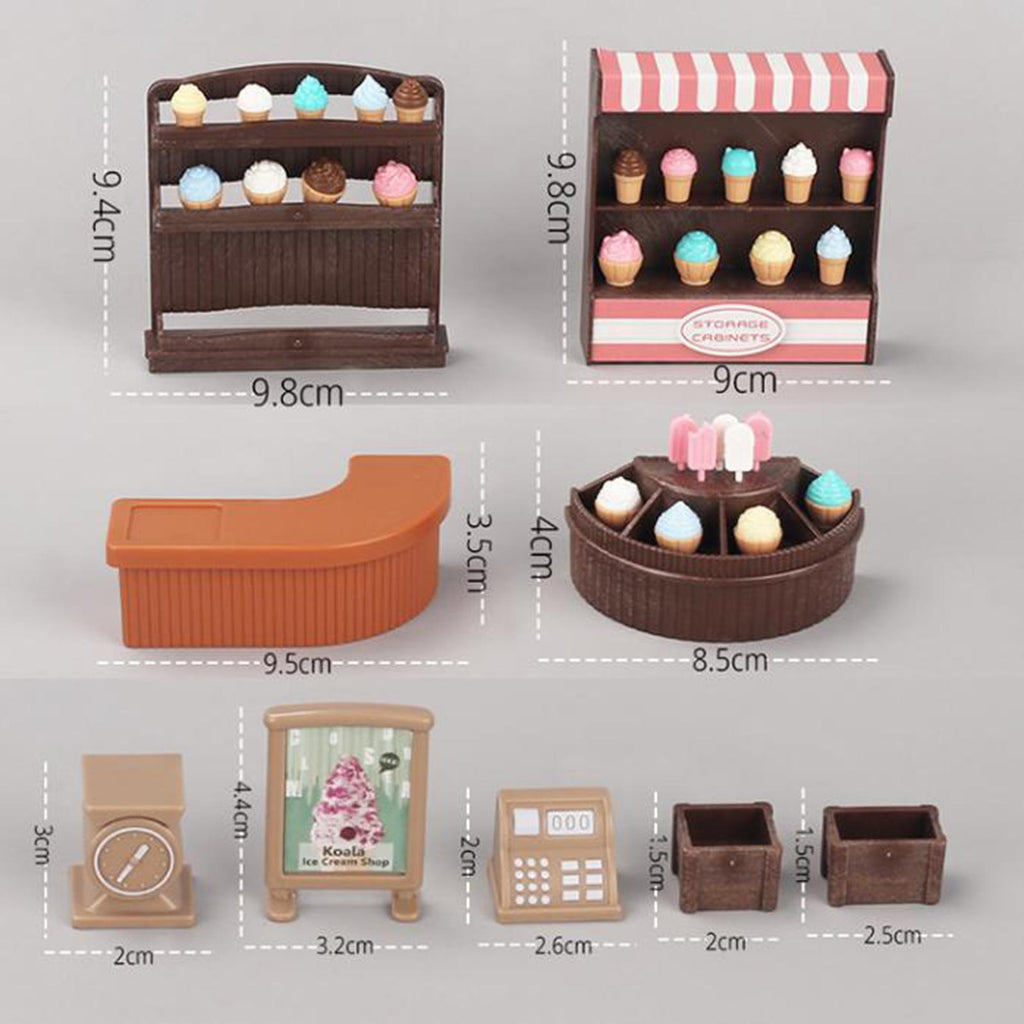 - 【Complete Ice Cream Shop Scene】: Includes ice cream display rack, counter, and signboard, ect to create a realistic miniature dessert shop for imaginative role play and scene simulation