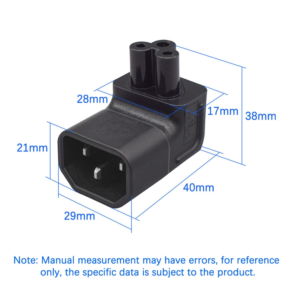 【Product Type】: IEC320 C14 to C5 power adapter, plug: 3 pin male IEC 320 C14, receptacle: female IEC 320 C5