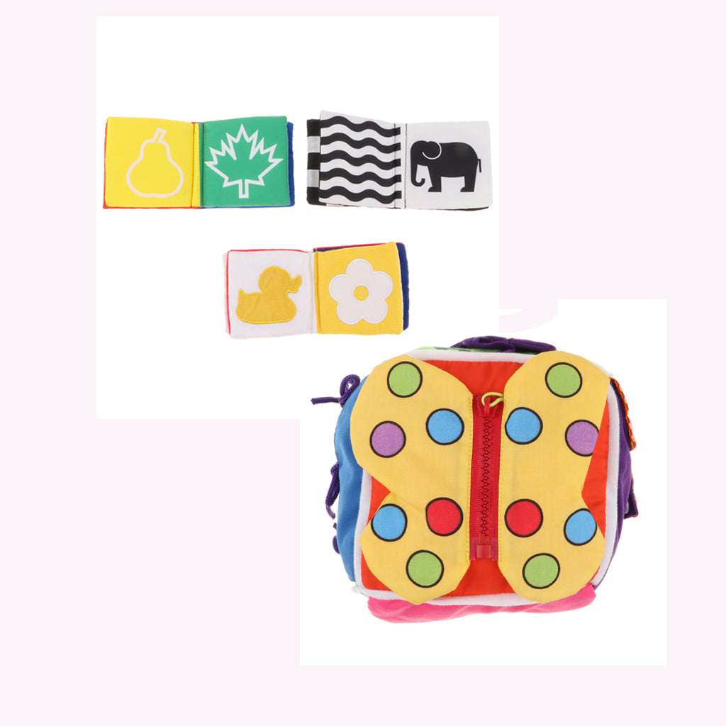 Set of 3 pieces Cloth Book & Early Learning Basic Life Skills Cube Set, for baby infant early visual brain development
