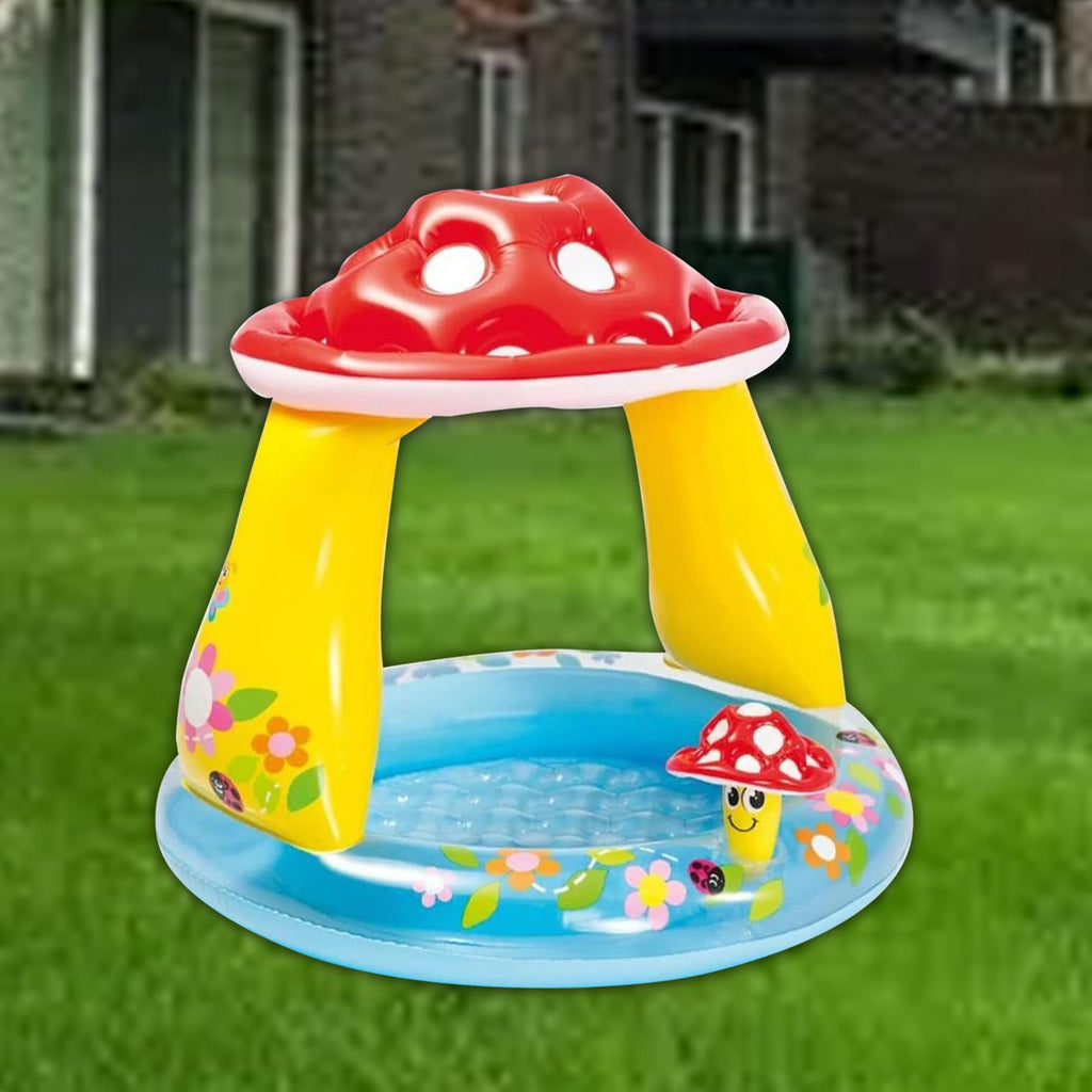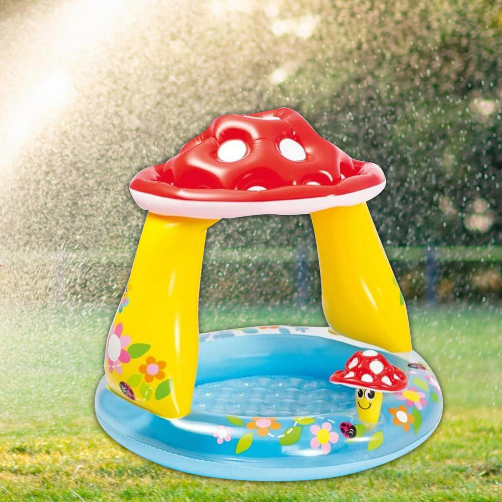 【Easy to Use】Inflatable baby pool is easy to inflate and deflate operation, can be easily folded, carry, and stored to save space. Skylight and soft air base for added comfort during , making it suitable for patios with sun protection feature.