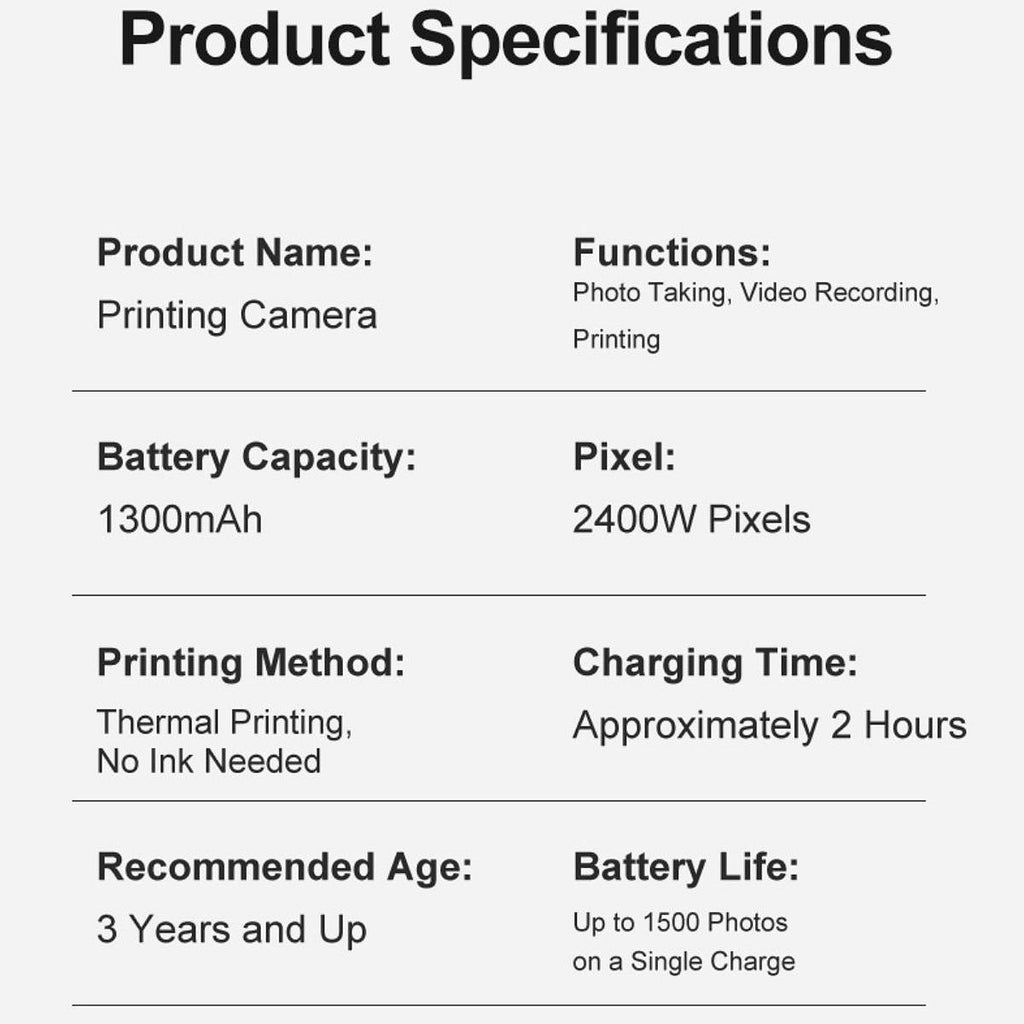 - 【Gifts】Kids Camera Instant Print, a good partner for kids daily life or holiday travel, a great gift for birthdays, festivals, or any other special occasions