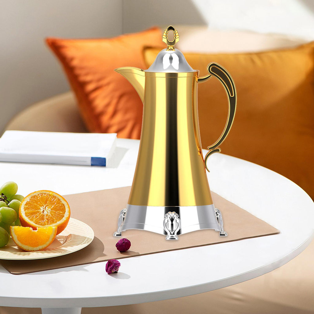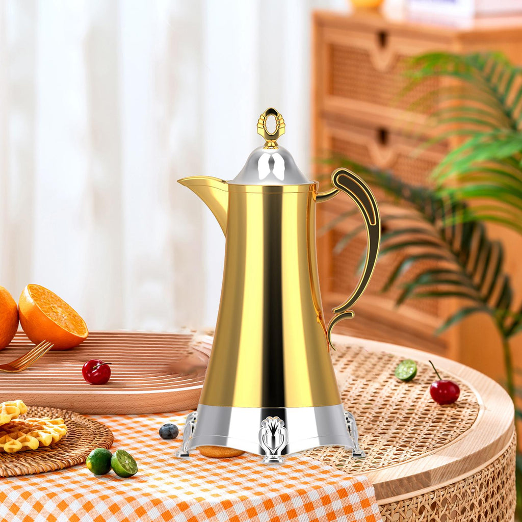 【Arabic Coffee Jug】This Arabic coffee carafe thermal pot features Arabic-inspired designs, exuding a sense of exotic elegance. A stylish addition to your kitchen or office. Ideal for coffee, tea, hot or cold water.