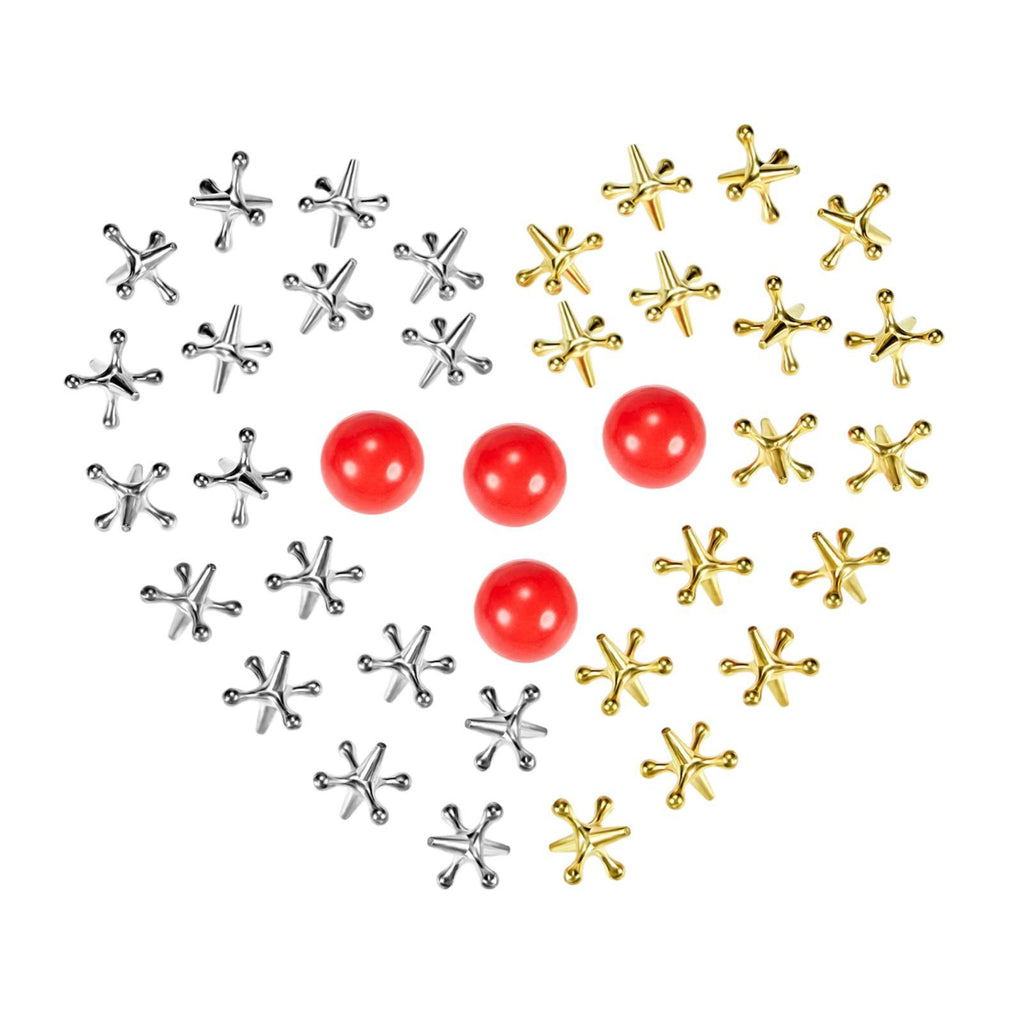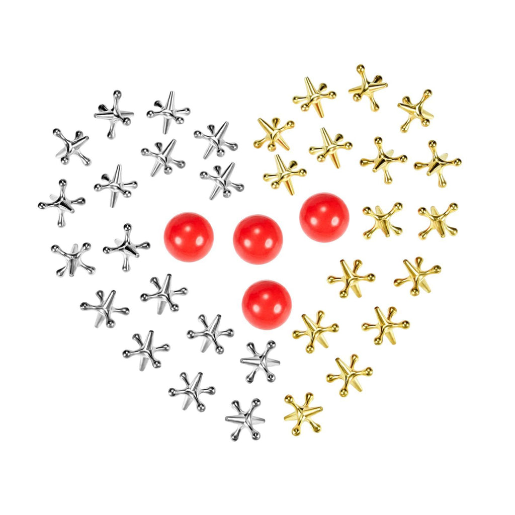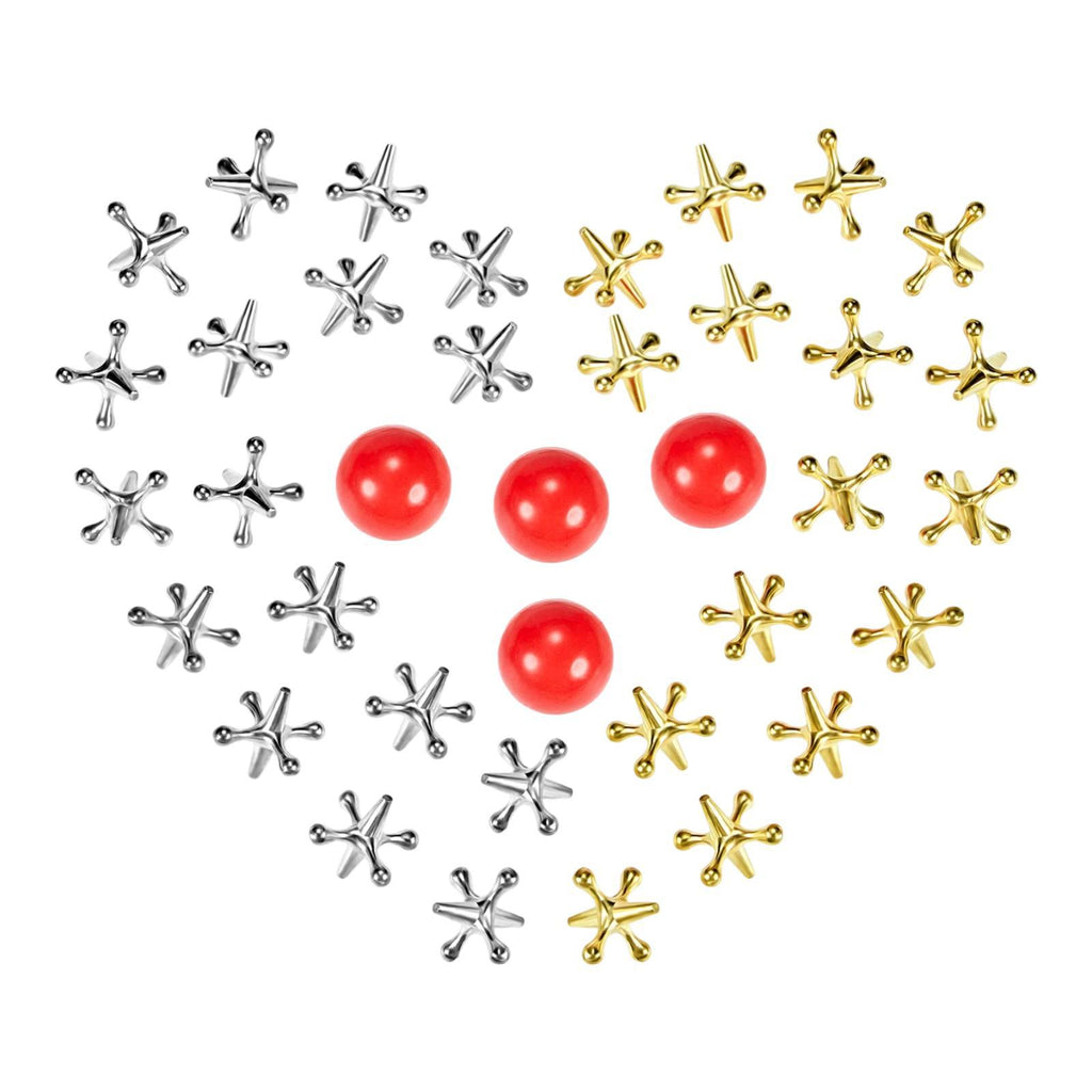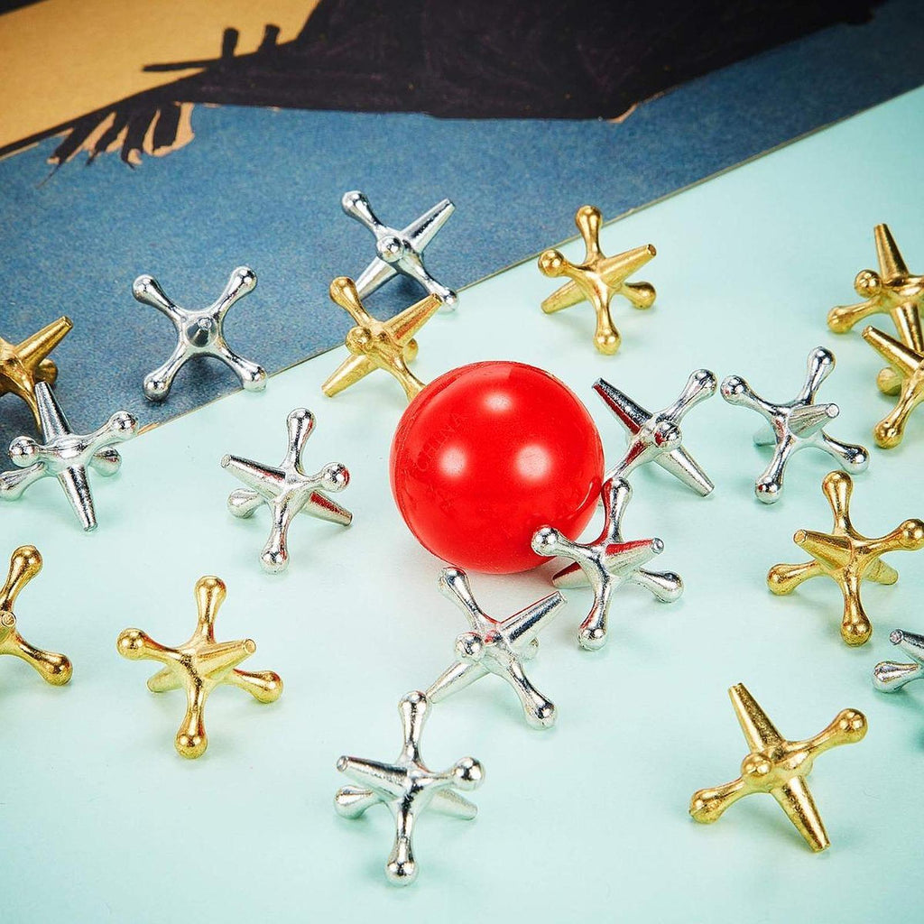 【Greatly Sized for Fun】: This set includes balls with a diameter of approximately 2.7cm (1inch) and jacks about 2cm (0.8inch) length, making them easy to handle and enjoyable to play with. The red color balls and the mix of 20 golden and 20 argent jacks, It's a thoughtful gift choice that combines entertainment with developmental
