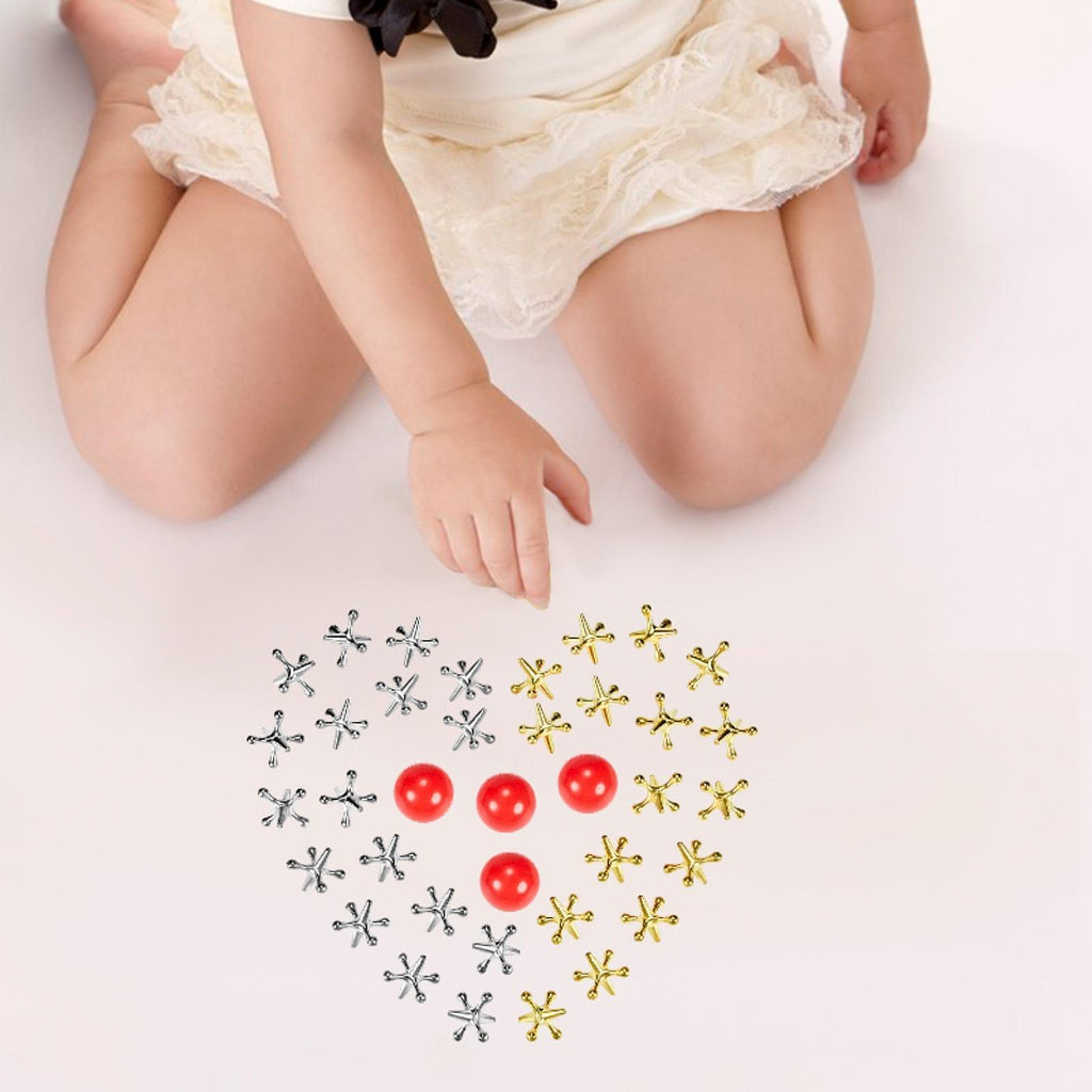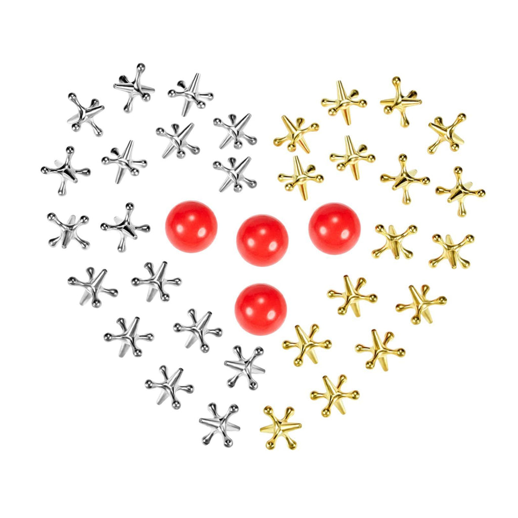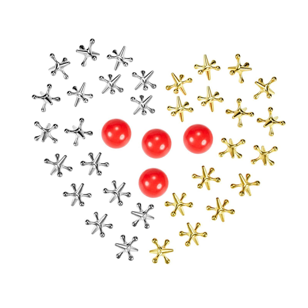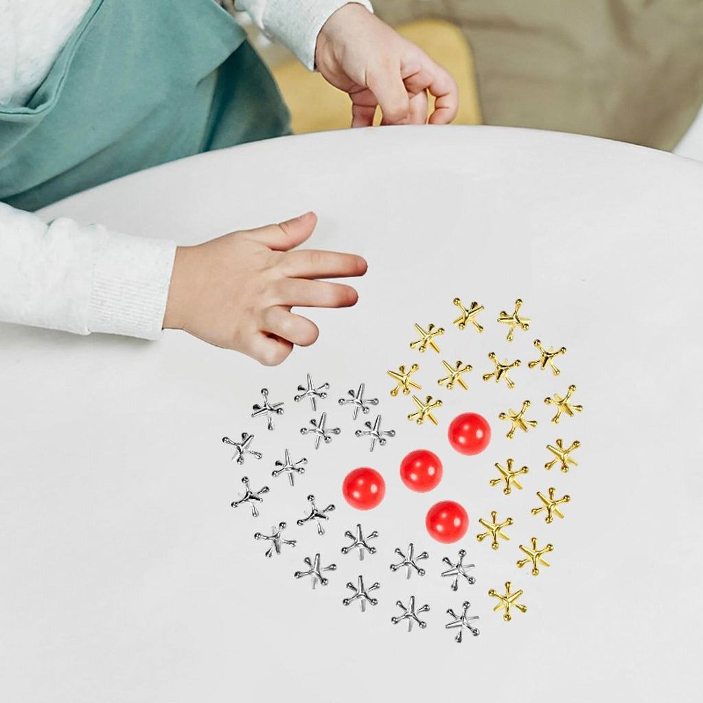 【Greatly Sized for Fun】: This set includes balls with a diameter of approximately 2.7cm (1inch) and jacks about 2cm (0.8inch) length, making them easy to handle and enjoyable to play with. The red color balls and the mix of 20 golden and 20 argent jacks, It's a thoughtful gift choice that combines entertainment with developmental