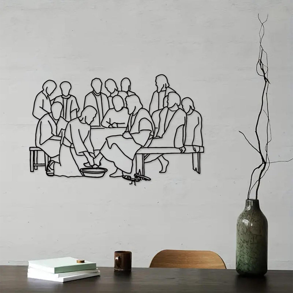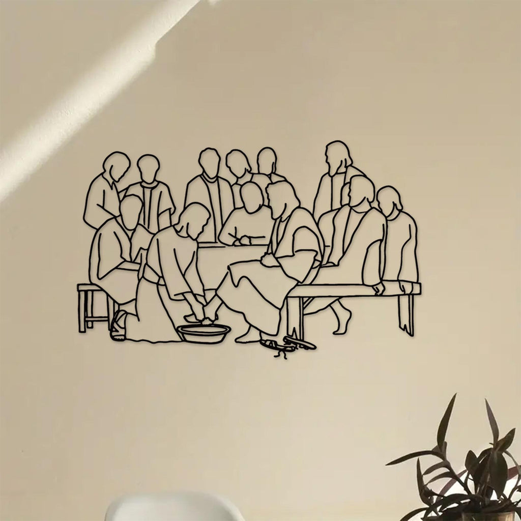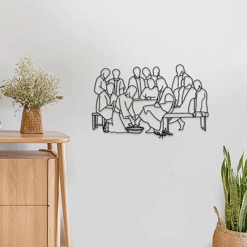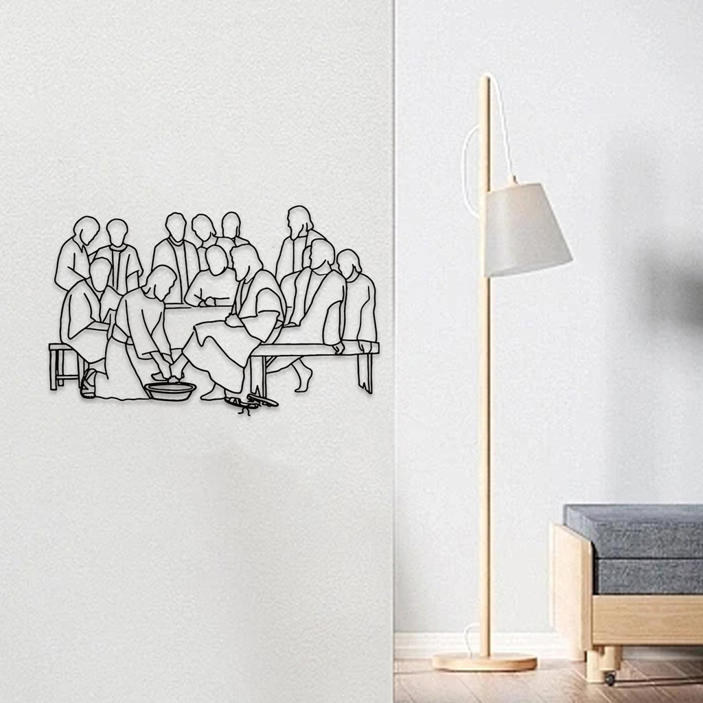 【Easter Decoration】: Jesus washing his disciple's feet statue, metal iron art crafts wall hanging decoration, create a warm holiday atmosphere.
