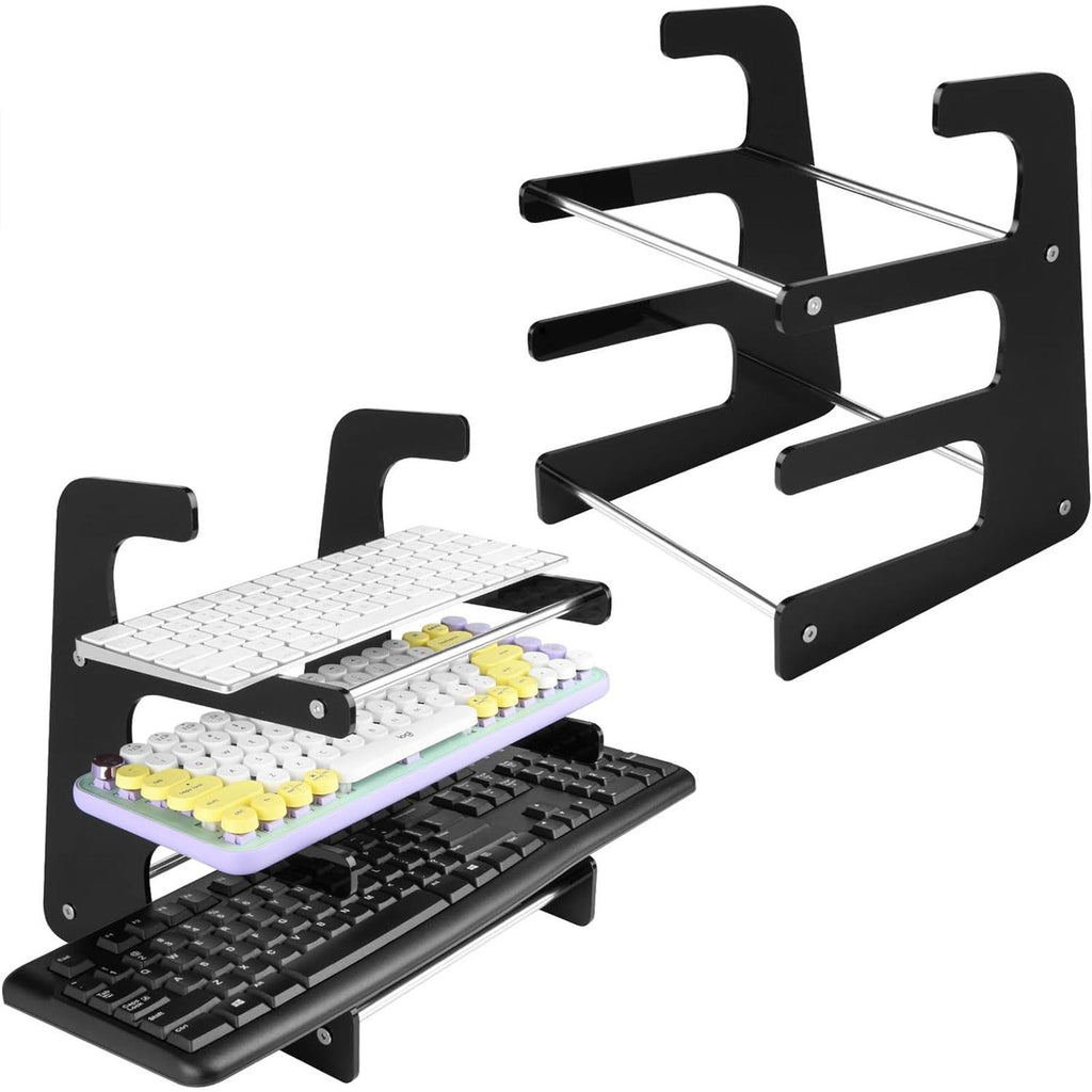 Maxbell Keyboard Stand Shelf Acrylic 3 Tiers Keyboard Mouse Organizer for Table Home Black