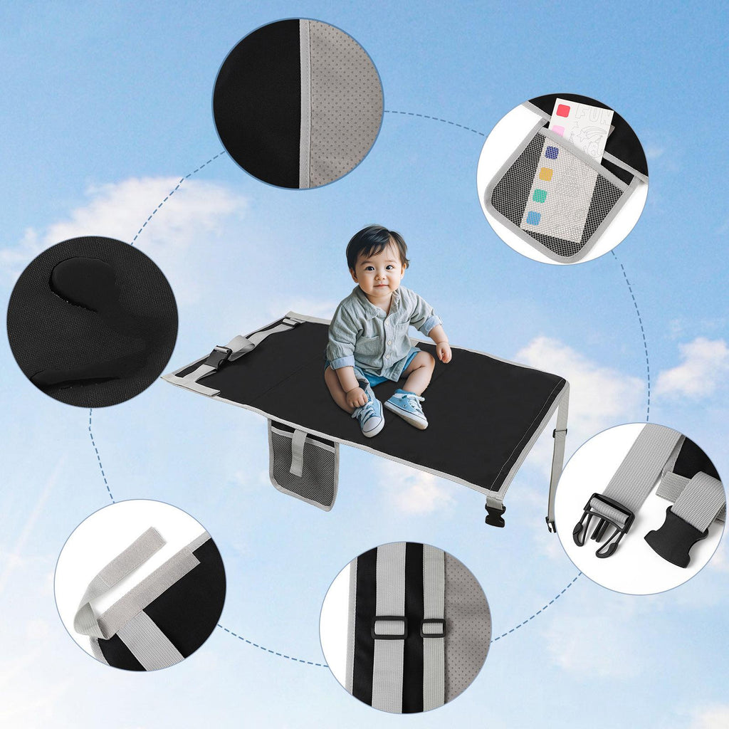 【Function】: This airplane seat extender for kids is like an airplane foot hammock, allowing kids to stretch their legs, rest, and relax, making the trip more comfortable. Not only lets the rest in their seat, but it also keeps their toys and food from falling on the floor