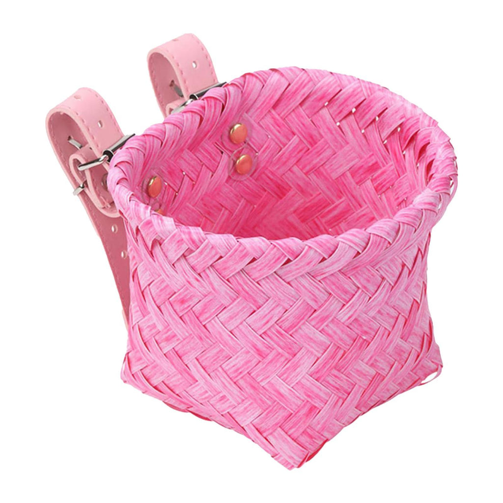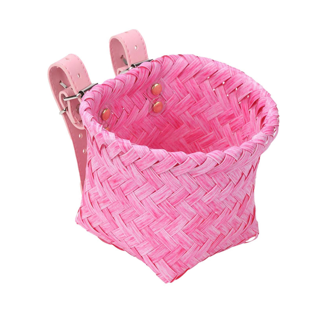 Maxbell Kids Bike Basket Decoration Gift Handwoven Compact Supplies Handlebar Basket Pink