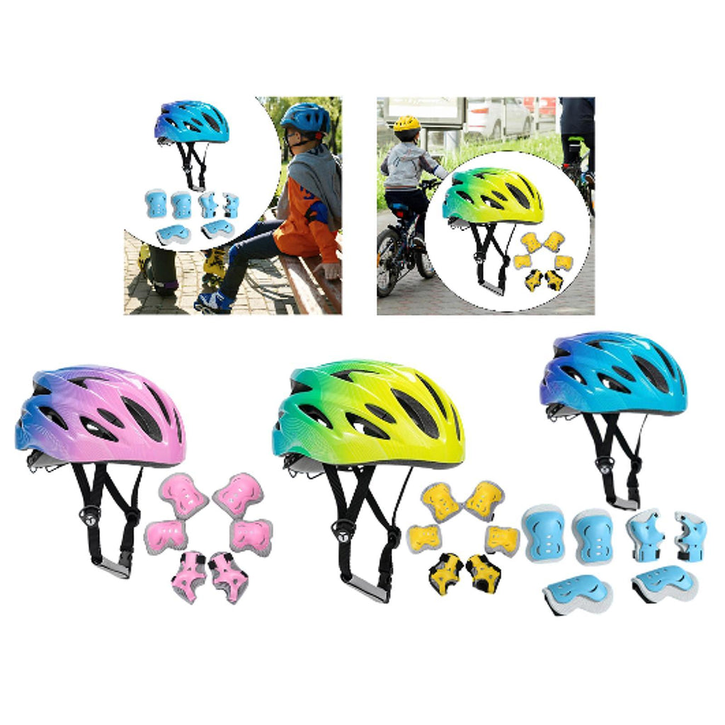 【Quality Material】: This Kids Bike Helmet is made from quality PC cloth velvet lining material, offering comfort for long term use. Size: Knee Pads 13 cmx12 cm/5.12 inchx4.72 inch, Elbow Pads 11 cmx11 cm/4.3 3inchx4.33 inch, Palm Pads 13 cmx8 cm/5.12 inchx3.15 inch, Helmet Head Circumference 52 cm-58 cm/20.47 inch-22.83 inch