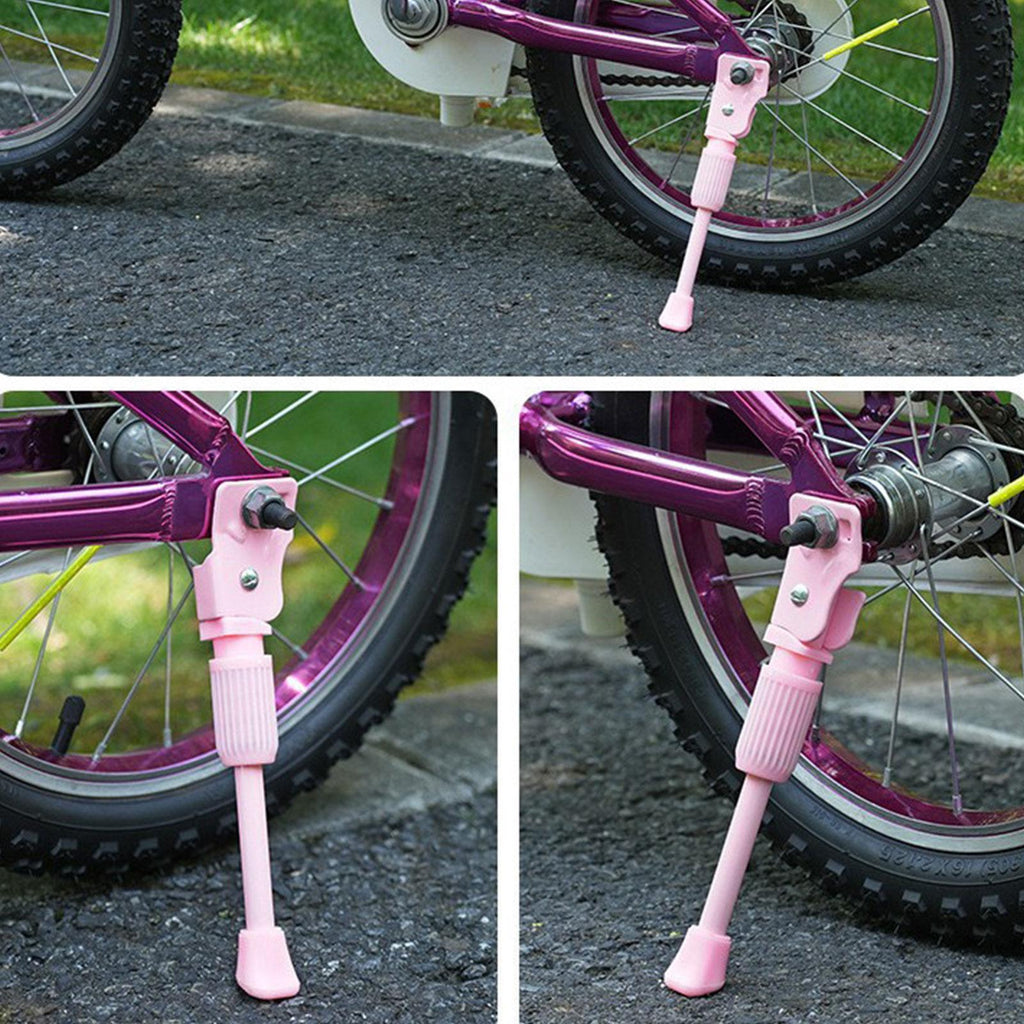 【Pink Kickstand for Kids Bike】: This is a pink children's bike kickstand that provides stability during rides, enhancing the fun of cycling for kids.