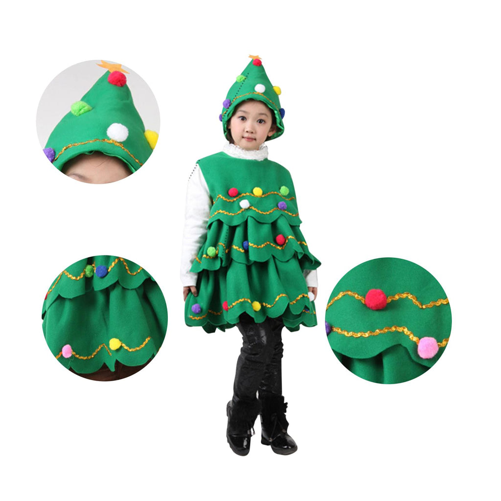 Maxbell Kids Cosplay Set Xmas Tree Decorative Clothes Festive Round Neck Fancy 150cm
