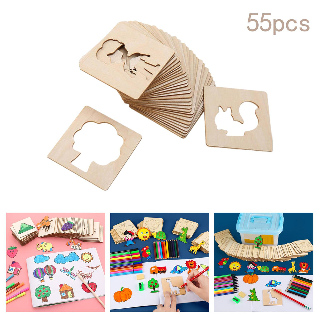 【Reusable】: Kids wooden drawing stencils are suitable for the shape of most pens, such as fine tip markers, ballpoint pens, brushes, pens, watercolor pens, colored pencils, pencils, etc., convenient for carrying or drawing images