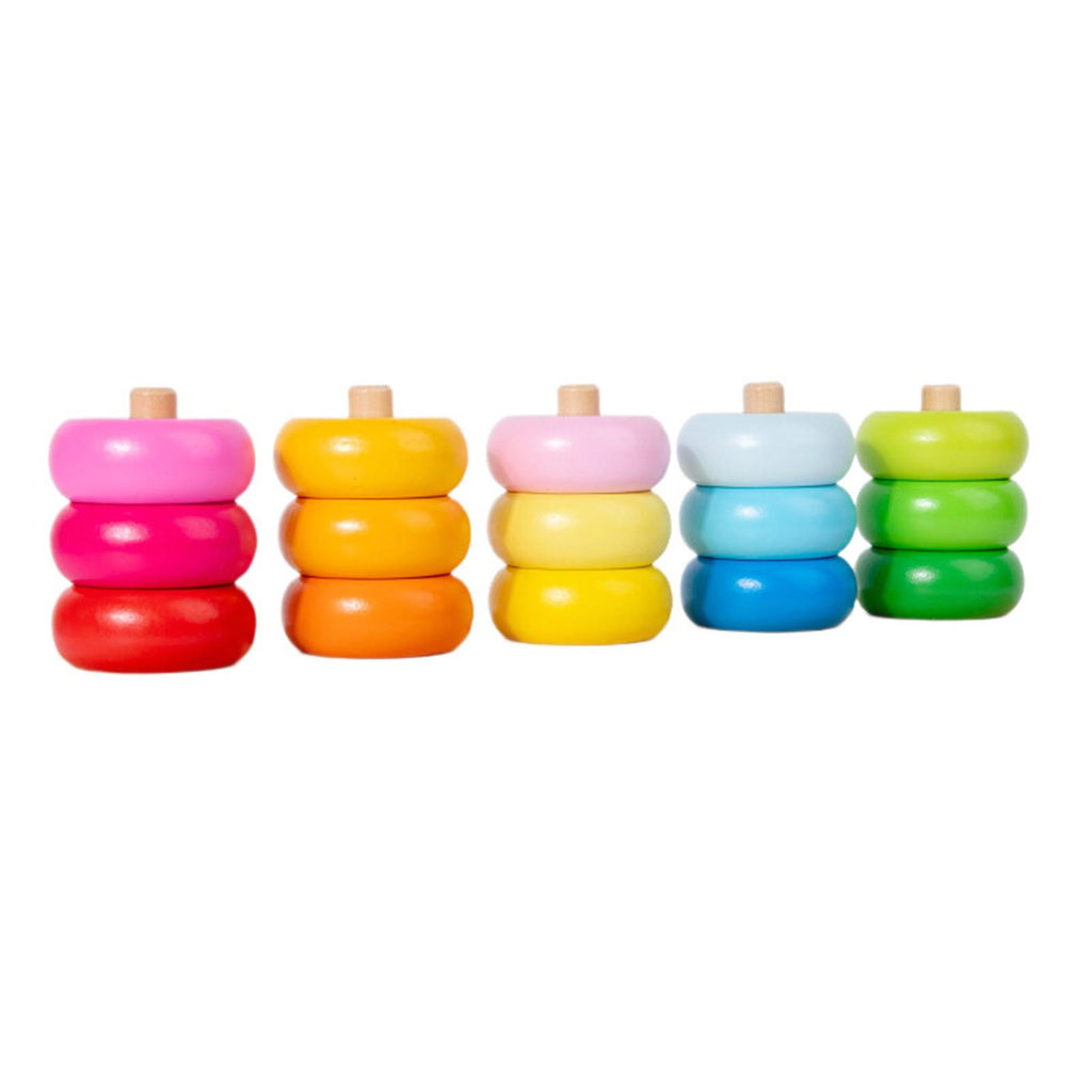 - 【Stacking Building Blocks Toy】: Features five sturdy wooden columns and colorful stacking rings, It's fun and challenging for children to think and complete stacking tasks