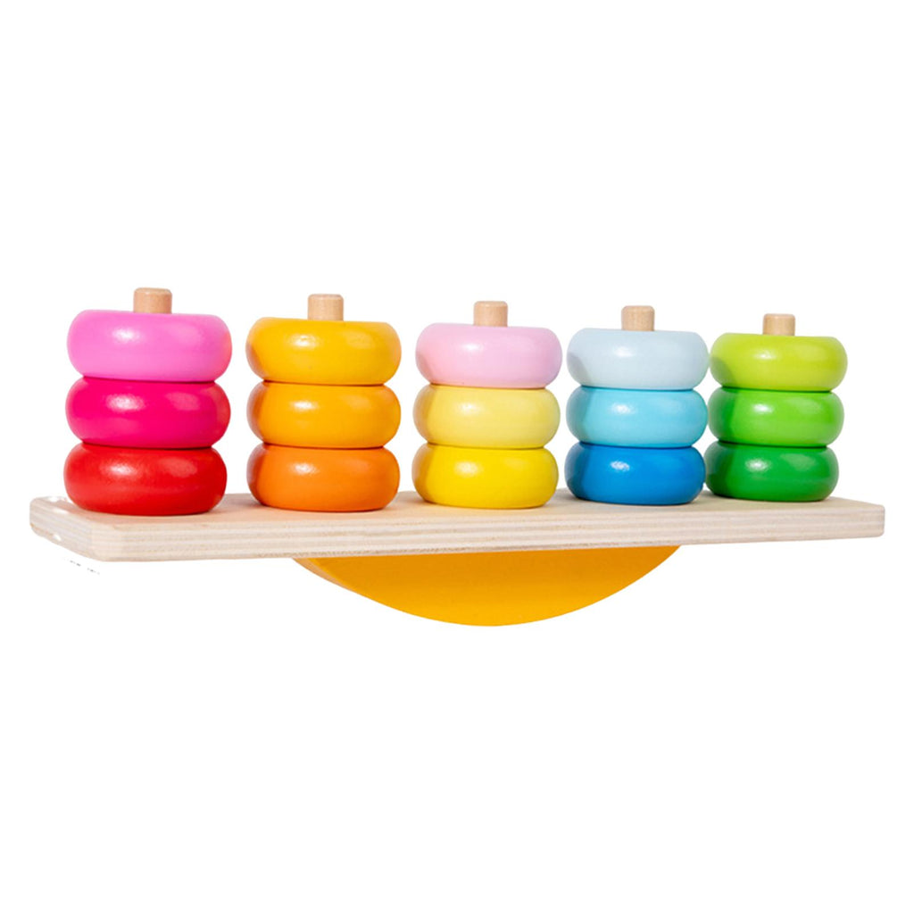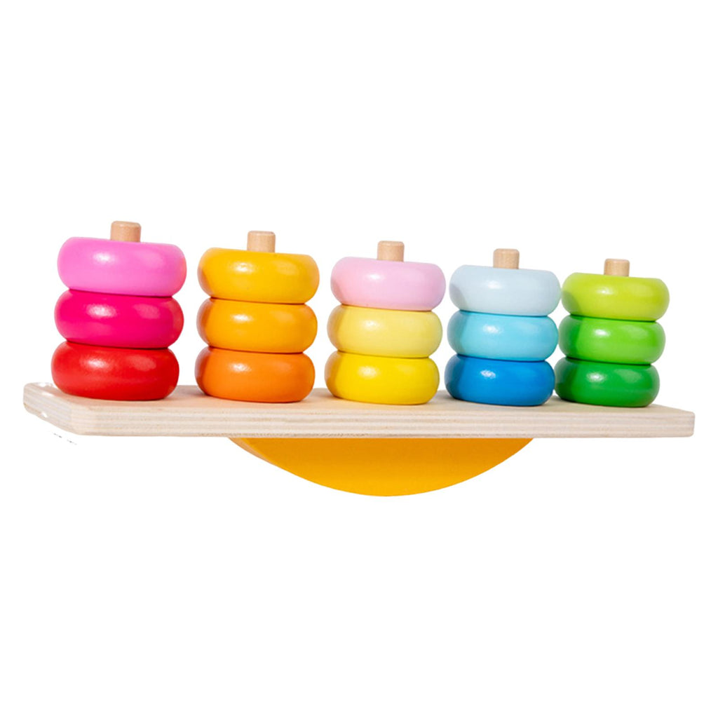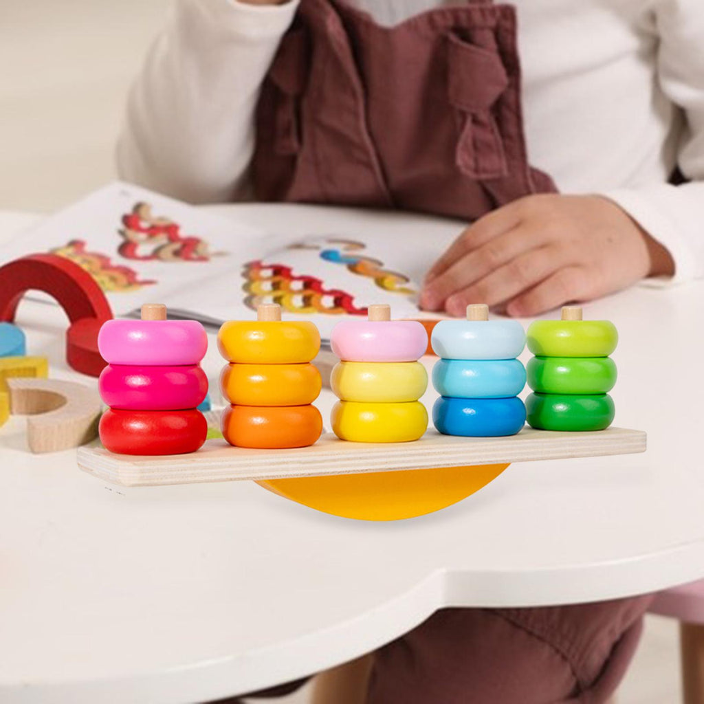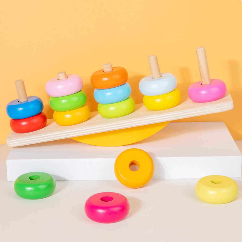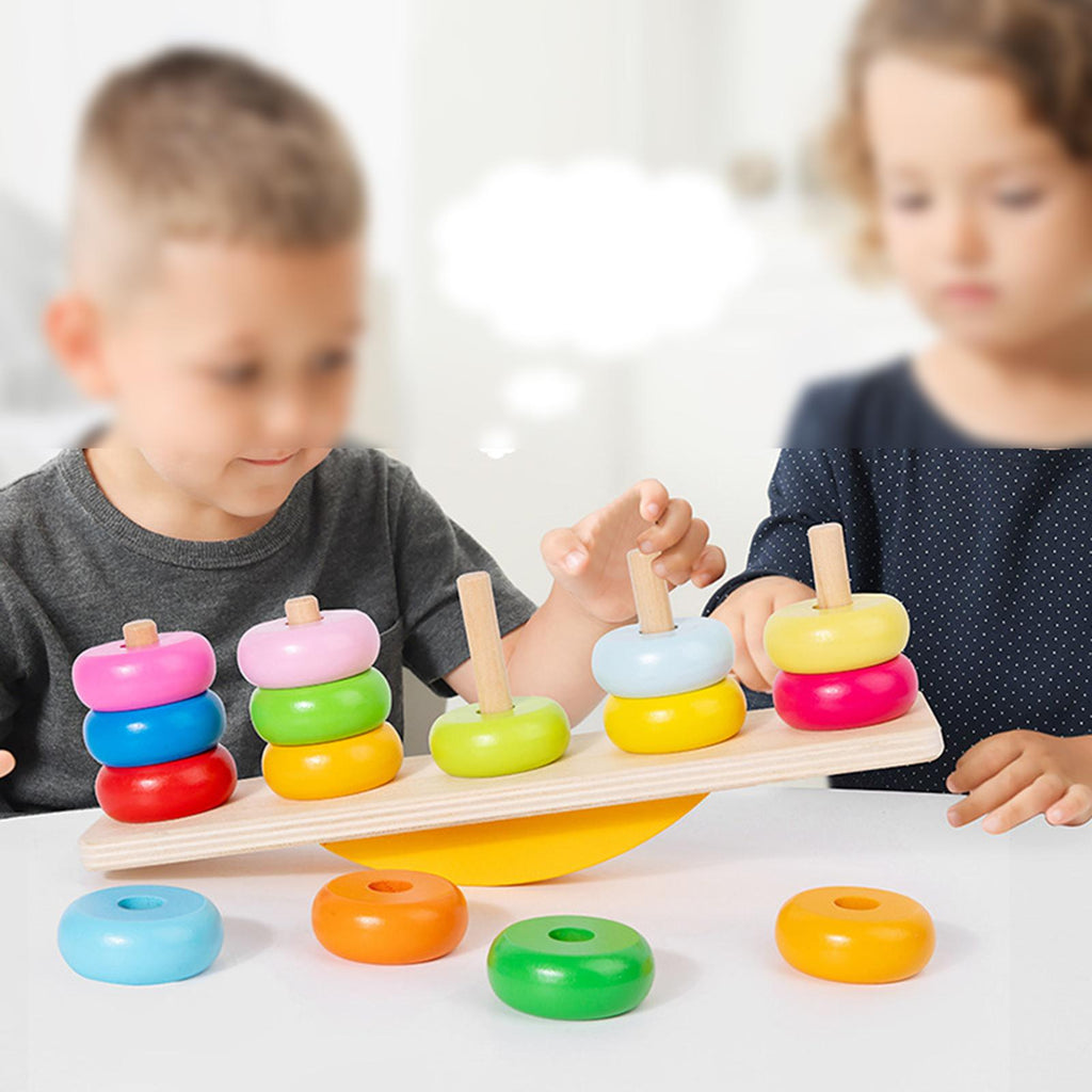 - 【Educational Toy】: Wooden Balance toy Helps develop essential skills such as hand eye coordination, color recognition, and fine motor abilities through play this toy