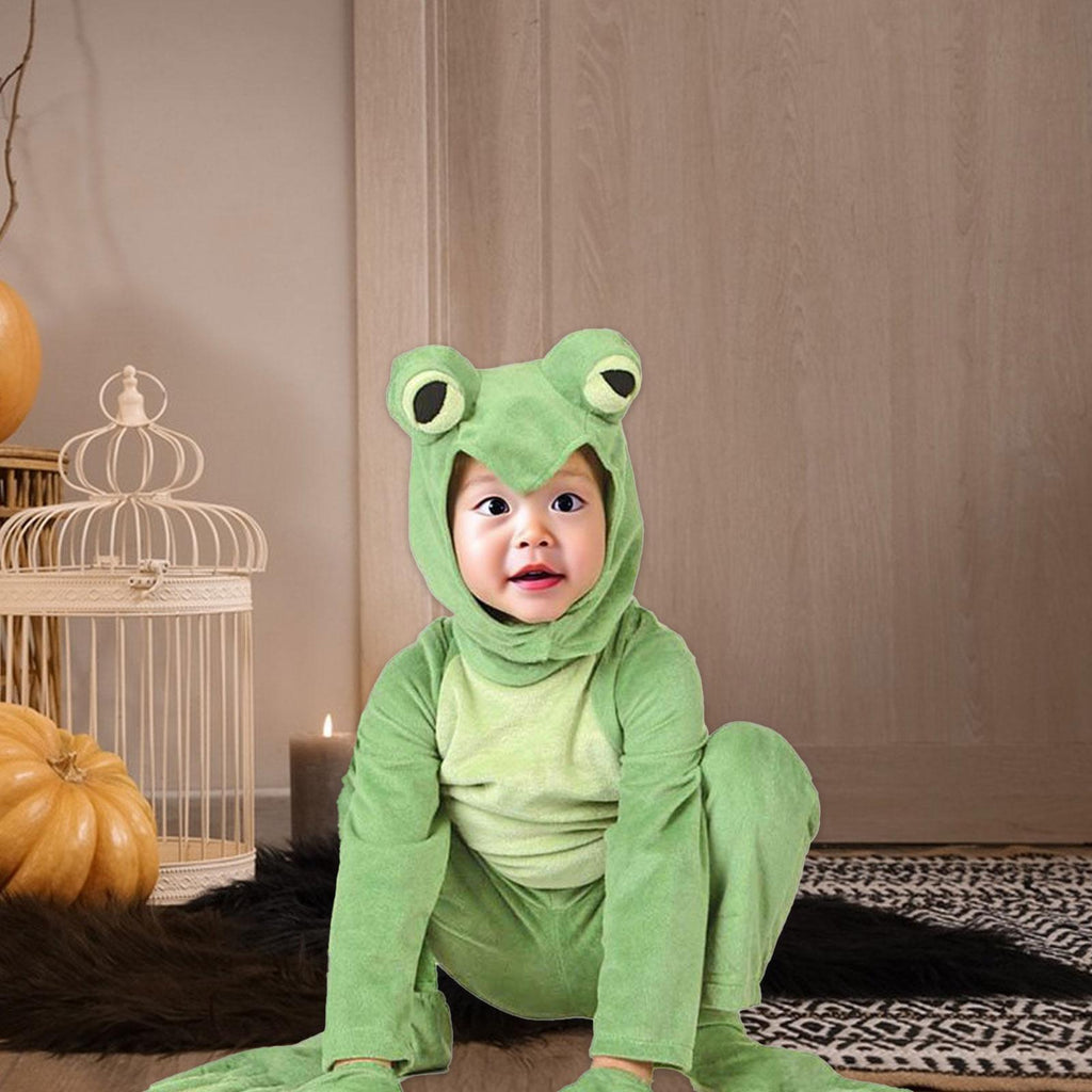 - 【Costume Accessories】: Kids frog costume set, includes 1 jumpsuit, 1 hood, 1 pair of gloves and 1 pair of shoe covers