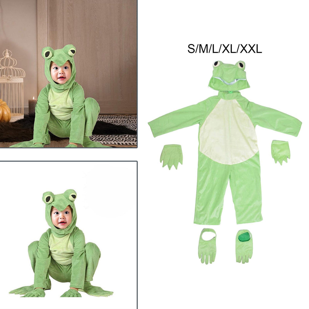 - 【Costume Accessories】: Kids frog costume set, includes 1 jumpsuit, 1 hood, 1 pair of gloves and 1 pair of shoe covers