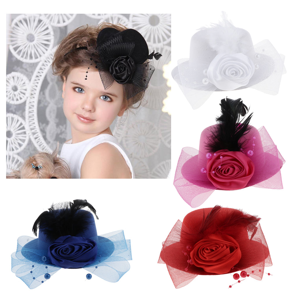 Kids Hats Fascinators/Baby Mini Top Hat Hair Clip/Girls Hair Accessories Fascinator Party Hats Dancing Cocktail Feather Headband Hair Clip.