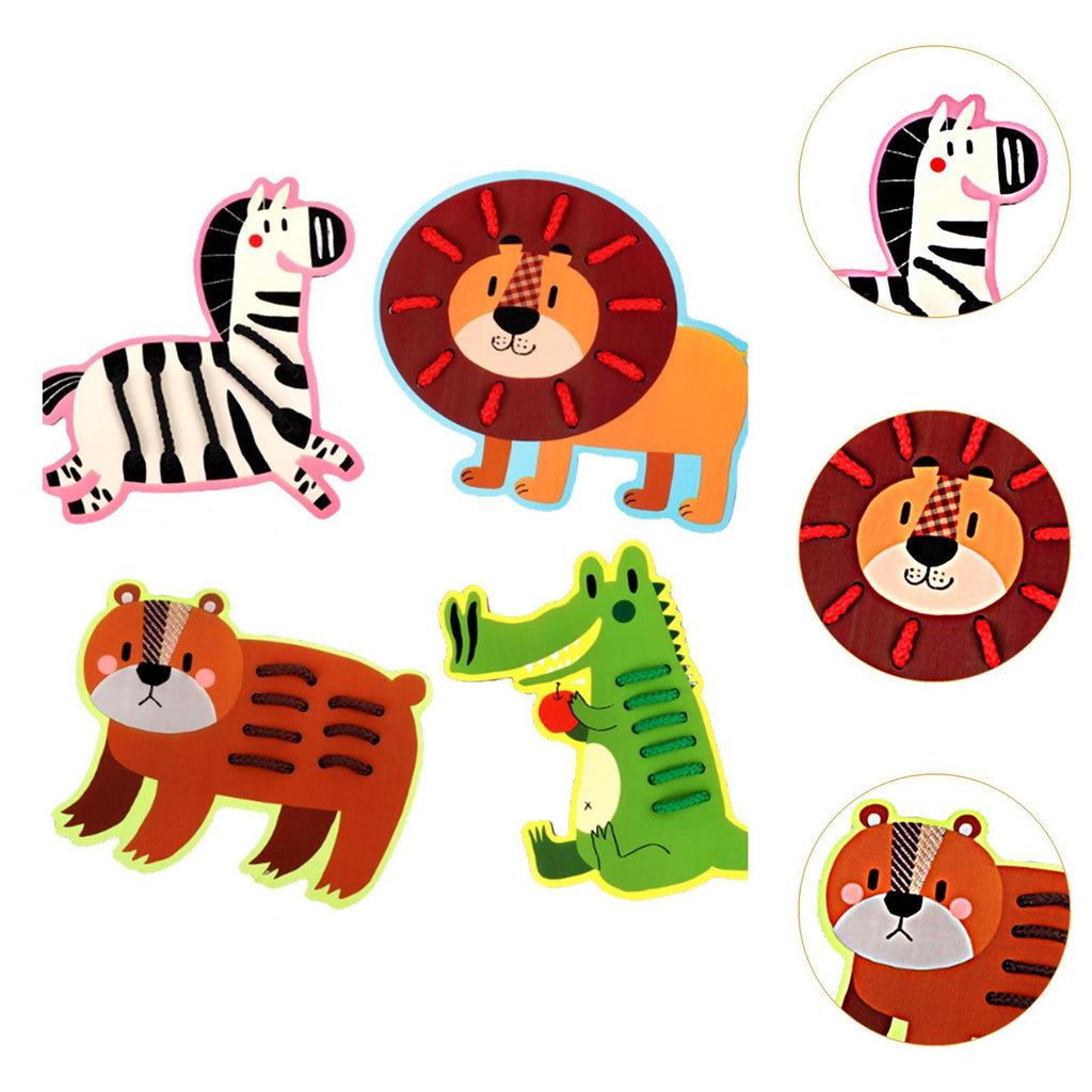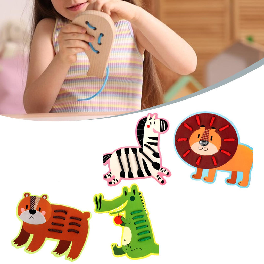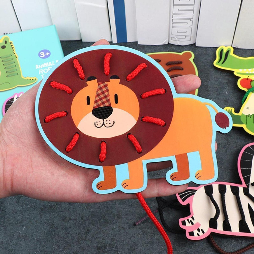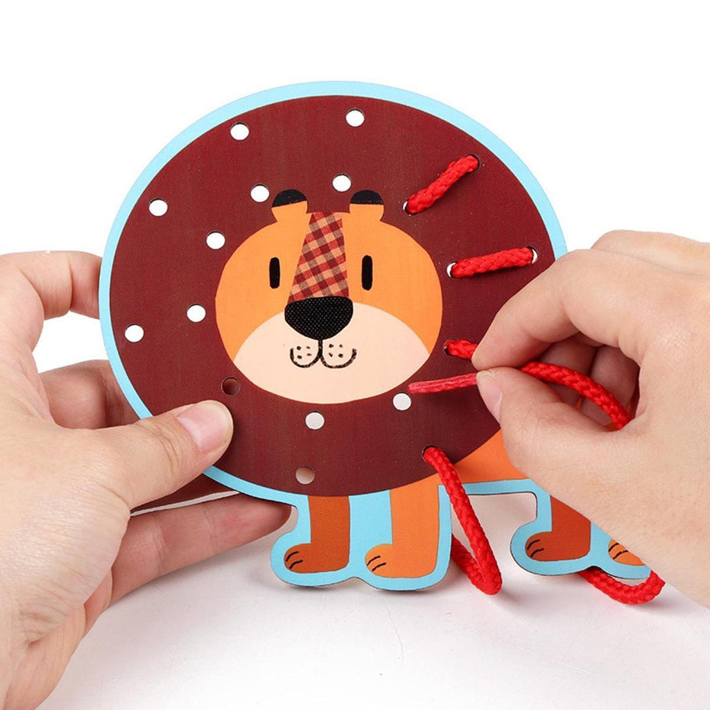 Maxbell Kids Lacing Toy Threading Board Improve Cognition for Boys Girls Puzzle Game Animal Pattern
