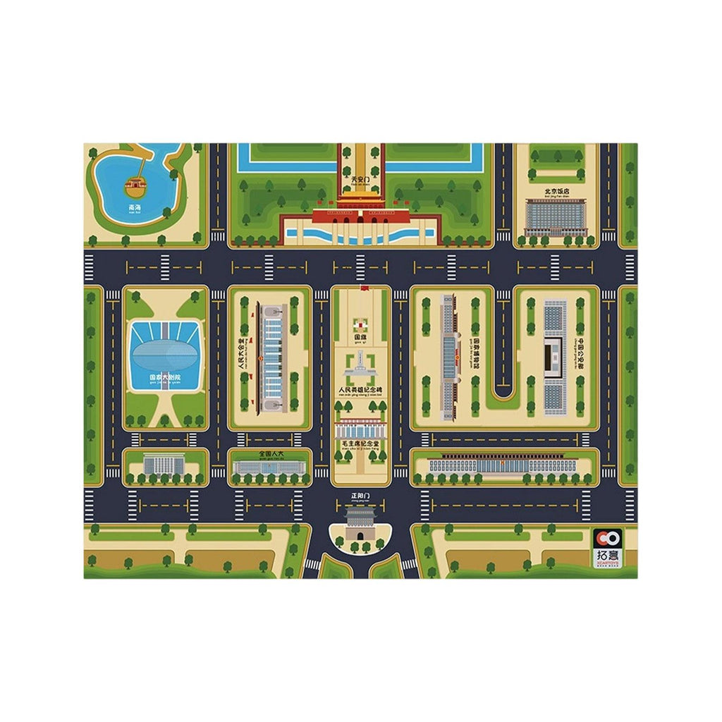 Maxbell Kids Play Rug for Kids Bedroom 55x43 inch Large Beijing City Traffic Playmat