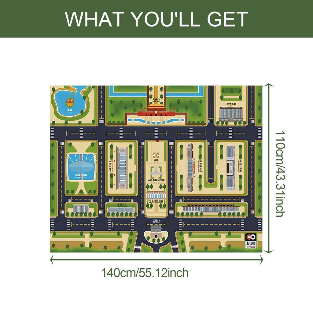 【Create Your Miniature Cityscape】: Children can unleash their creativity by arranging their own miniature city landscapes on city themed play mat