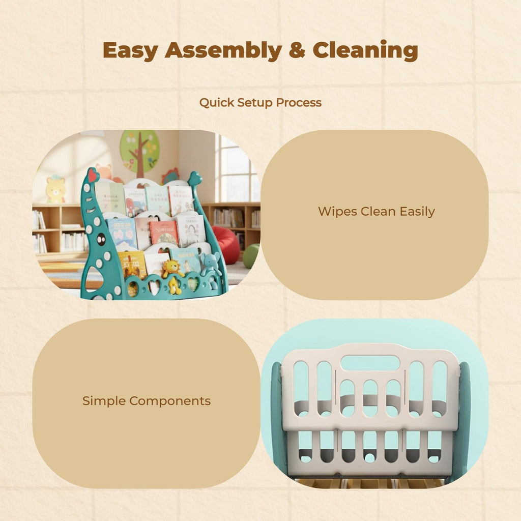 【Multi-functional Kids Shelving Unit for Nursery and Playroom】This standing storage rack combines the functions of a shelving unit, toy organizer, and display shelf, making it perfect for children's rooms, nurseries, and playrooms.【robust and Stable Construction】Made from high-quality materials, this organizer features a sturdy design to ensure durability and stability for toddlers and babies.【Easy to Install and Clean】With simple assembly and polished surfaces, installation is quick and cleaning is hassleperfect for busy families.【Large Capacity with Deep Pockets】The rack holds more books and toys, featuring deep pockets for easy reach and organization, making it suitable even for smaller spaces.【Adaptable Storage Solution】Perfect for bedrooms, libraries, classrooms, and infant rooms, this organizer helps keep your space tidy and well-organized.Specification: