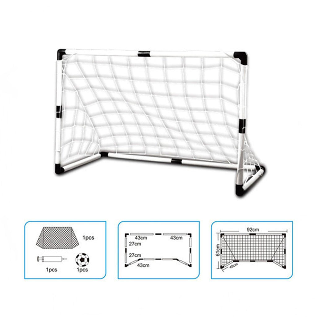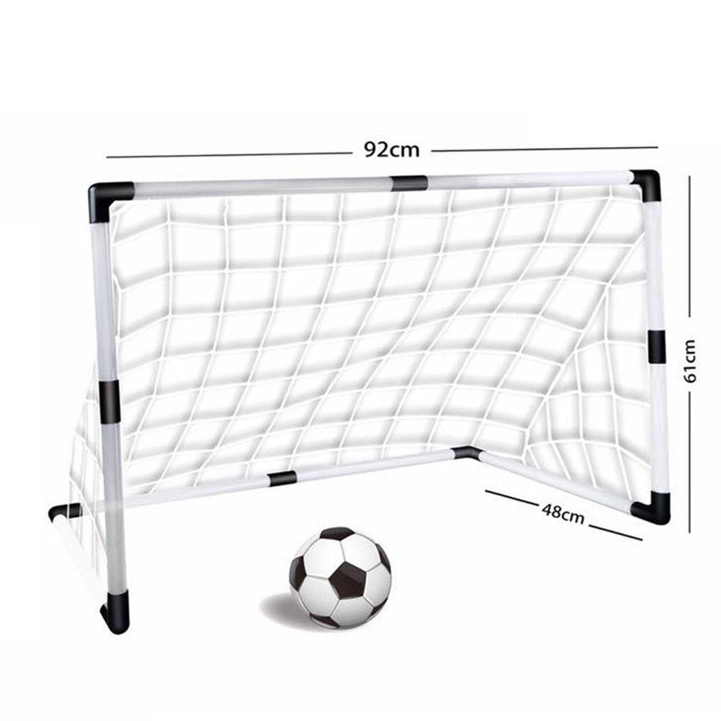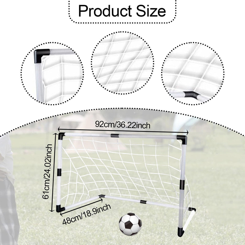 【Indoor Outdoor Children Soccer Toy】: The Size of Kids Soccer Goal for Backyard Set is 92cm x 61cm x 48cm, suitable for children over 3 years old. It can be used on flat ground indoors or on the lawn outdoors to meet diverse needs