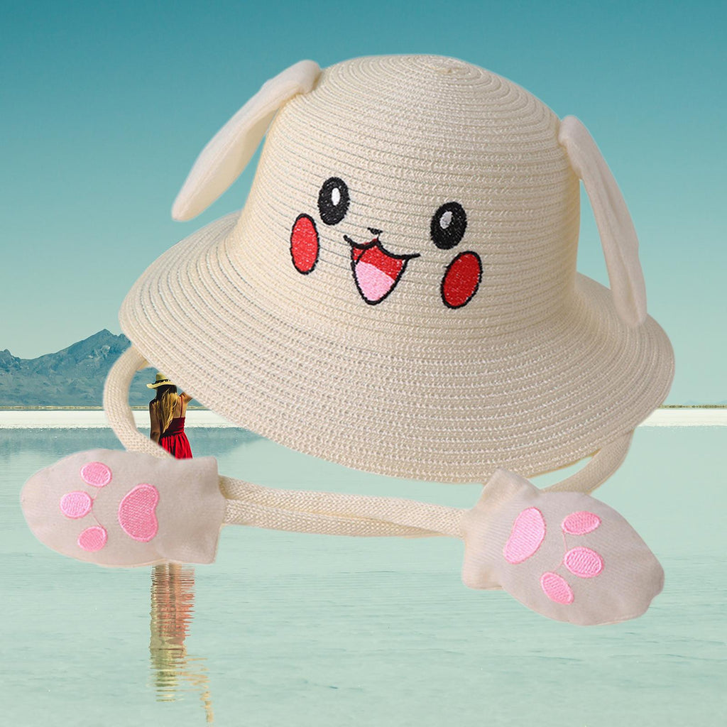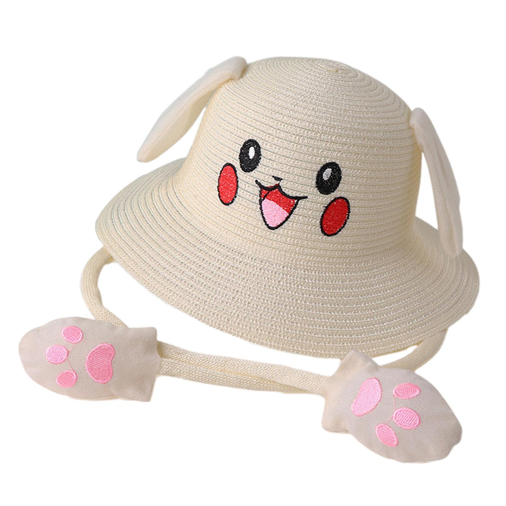 Maxbell Kids Sun Hat Cute Rabbit Hat Breathable Summer Beach Cap Children Bucket Cap Beige