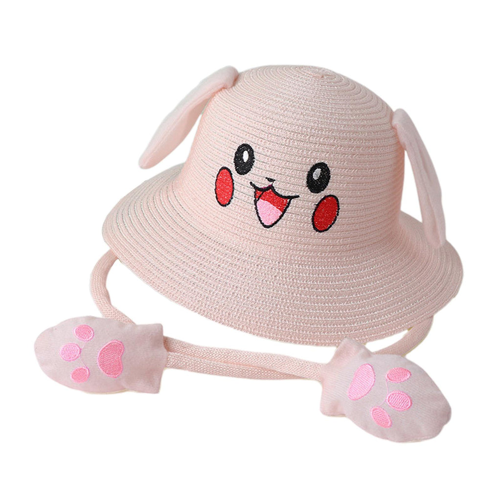 Maxbell Kids Sun Hat Cute Rabbit Hat Breathable Summer Beach Cap Children Bucket Cap Light Pink